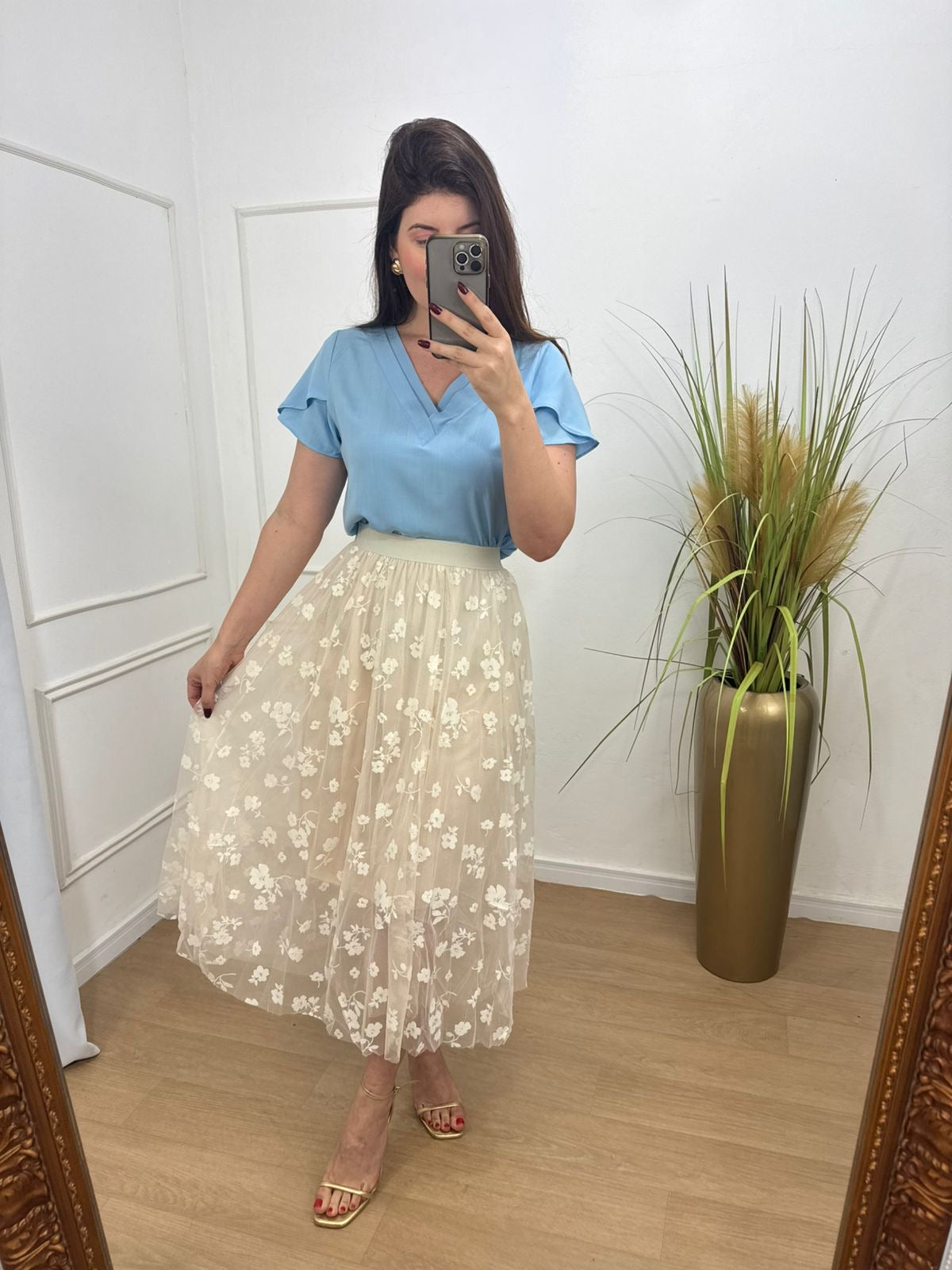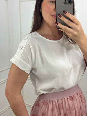Blusa no viscolinho premium detalhes em botões no ombro.