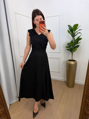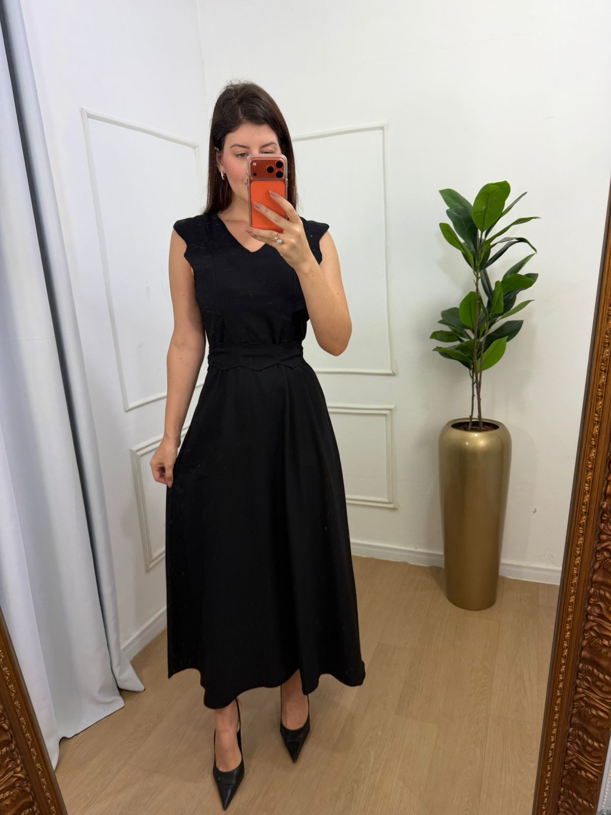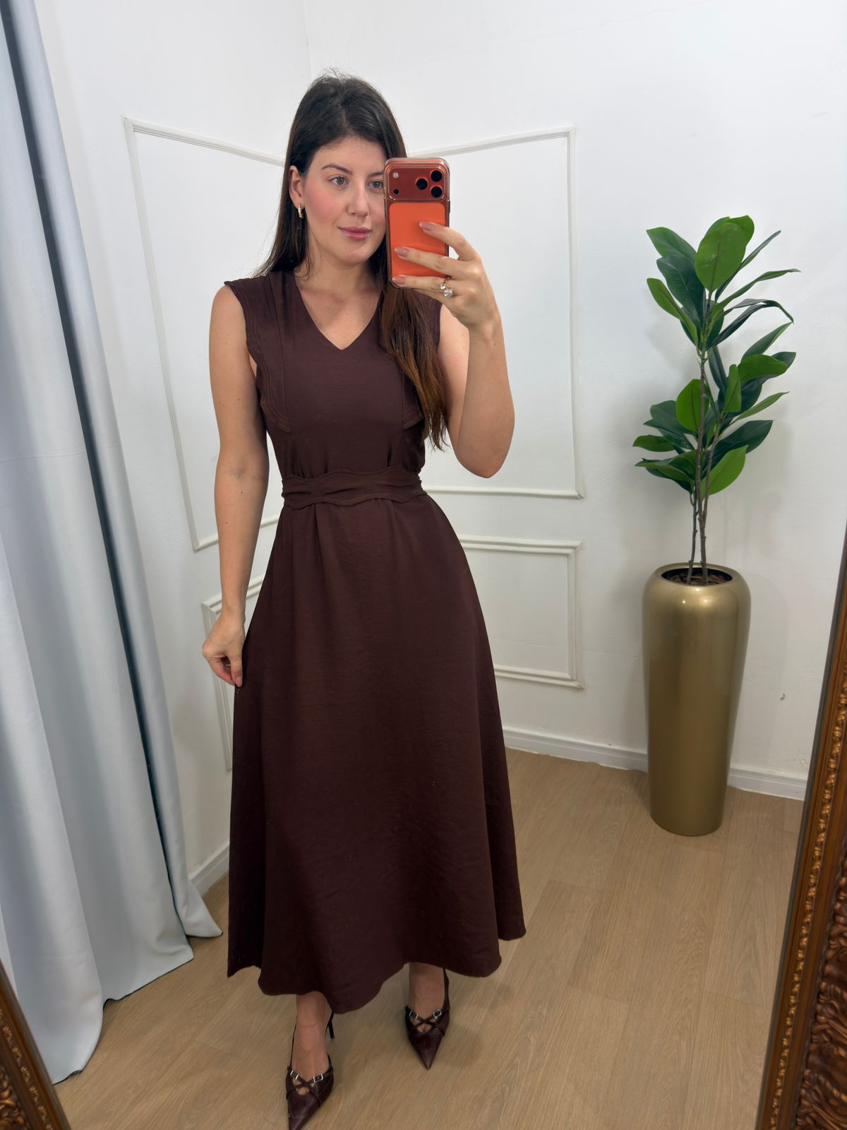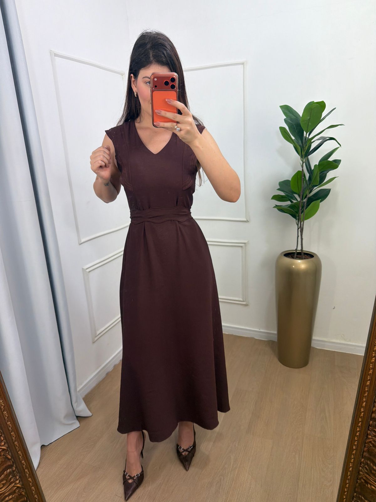 Vestido no marrant zíper nas costas , modelagem evase, amarração cintura.