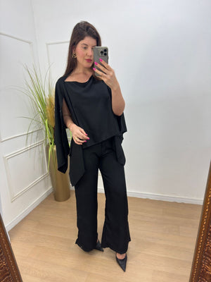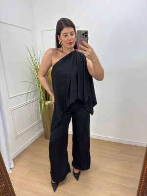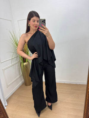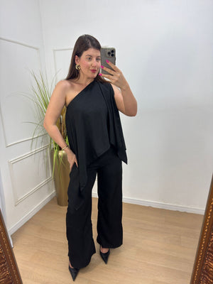 Conjunto elegante confeccionado em tecido de alfaiataria encorpada, com caimento impecável e toque suave.