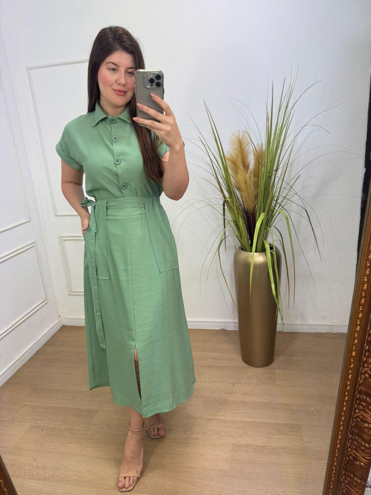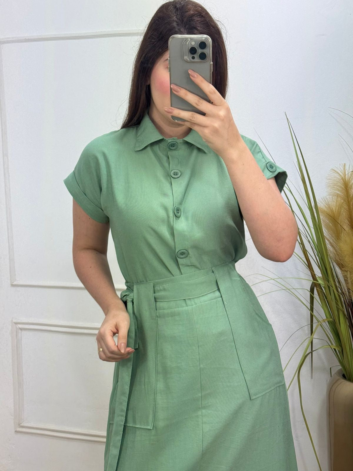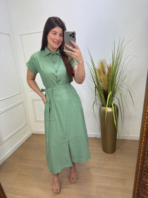 Esse conjunto é composto de uma camisa lindíssima+ saia super midi evasê, acompanha faixa e possui elástico na parte de trás do cós.