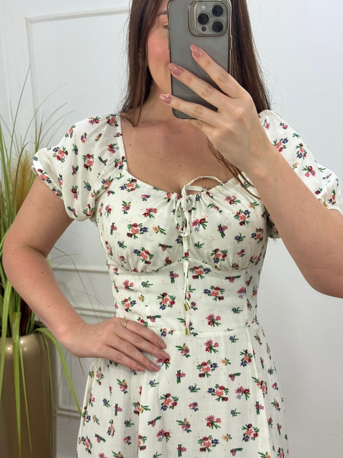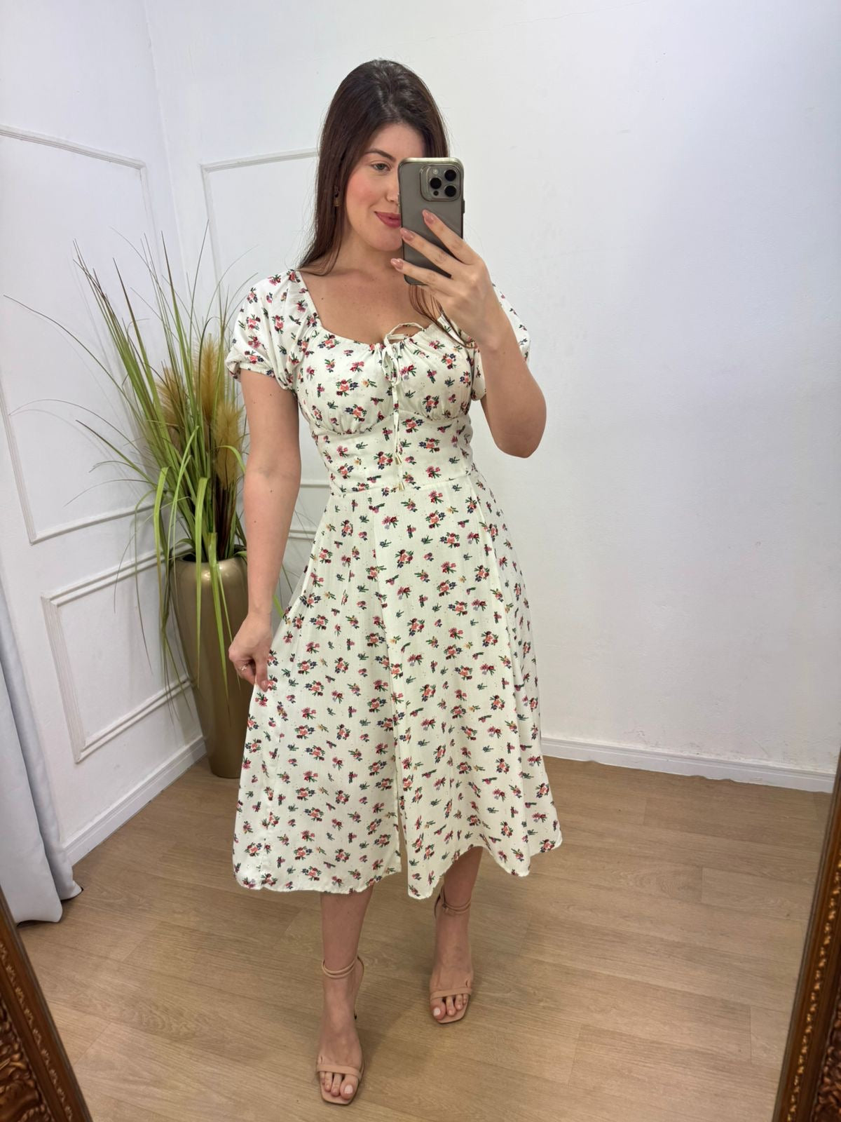 Vestido no viscolinho premium forrado com amarração e elástico nas costas.