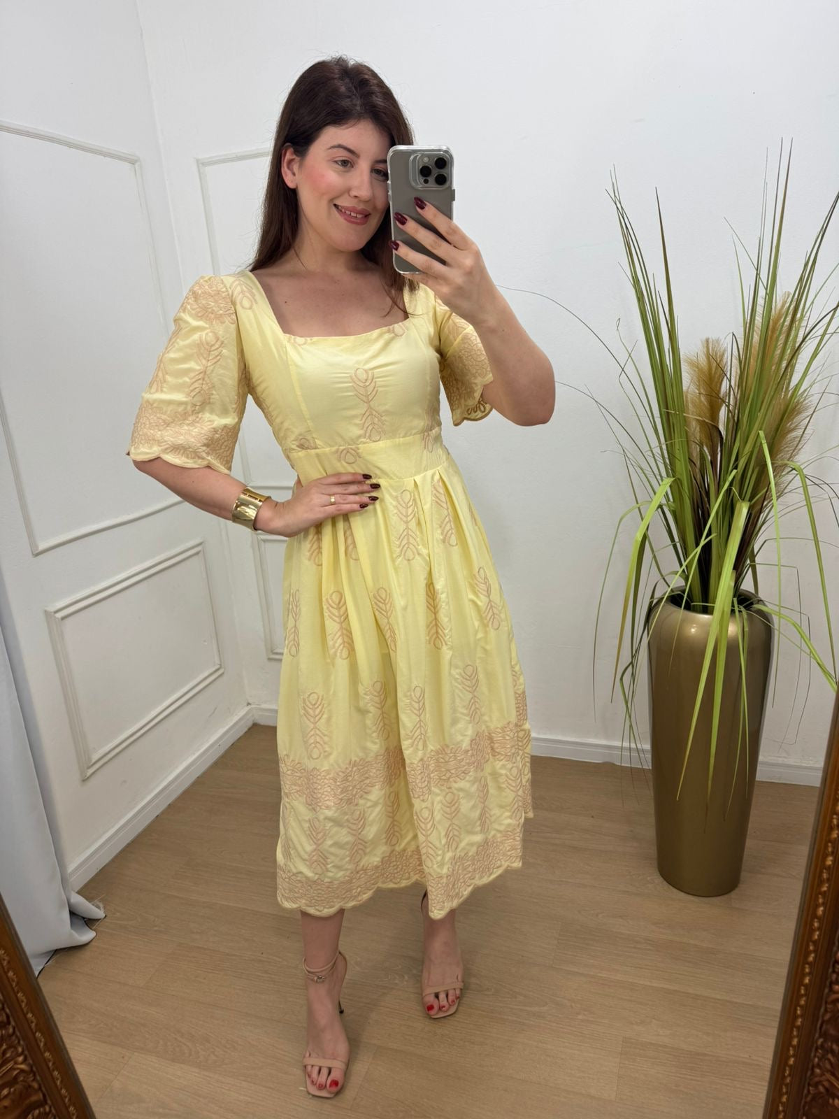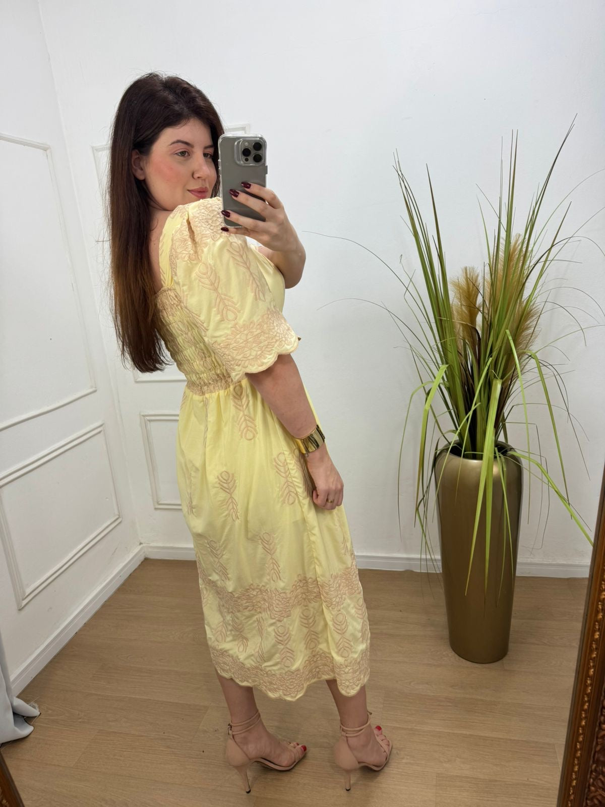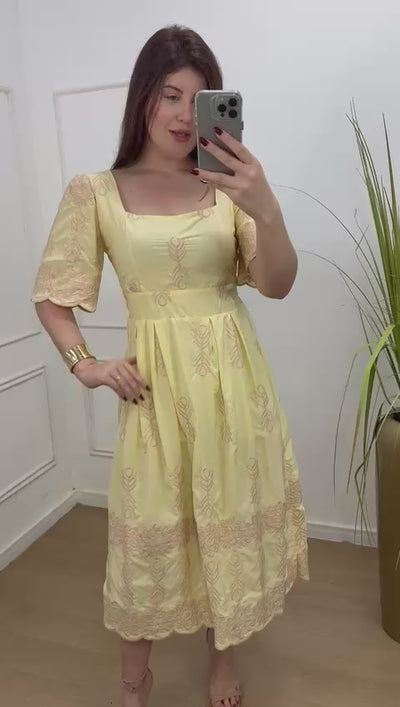 vestido no viscolinho bordado com acabamento em leze, forrado simplesmente perfeito, lastex nas costas.