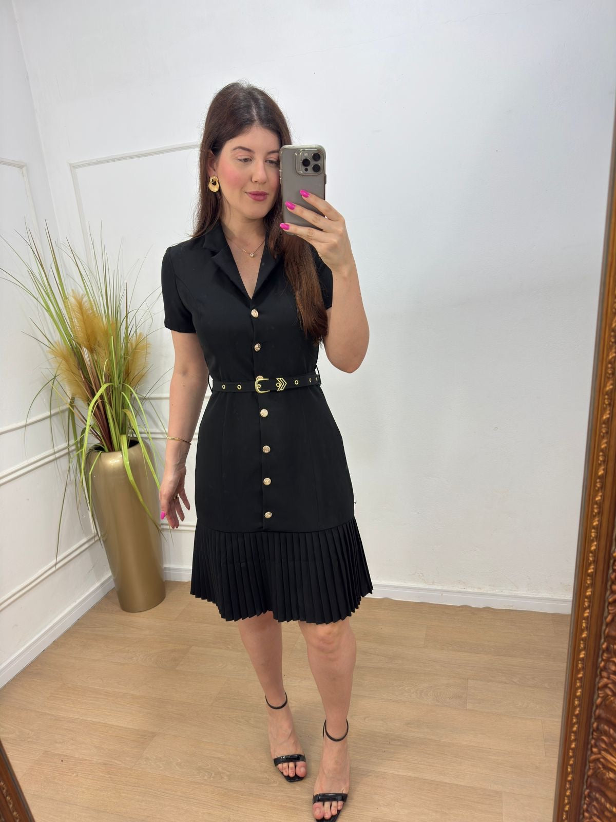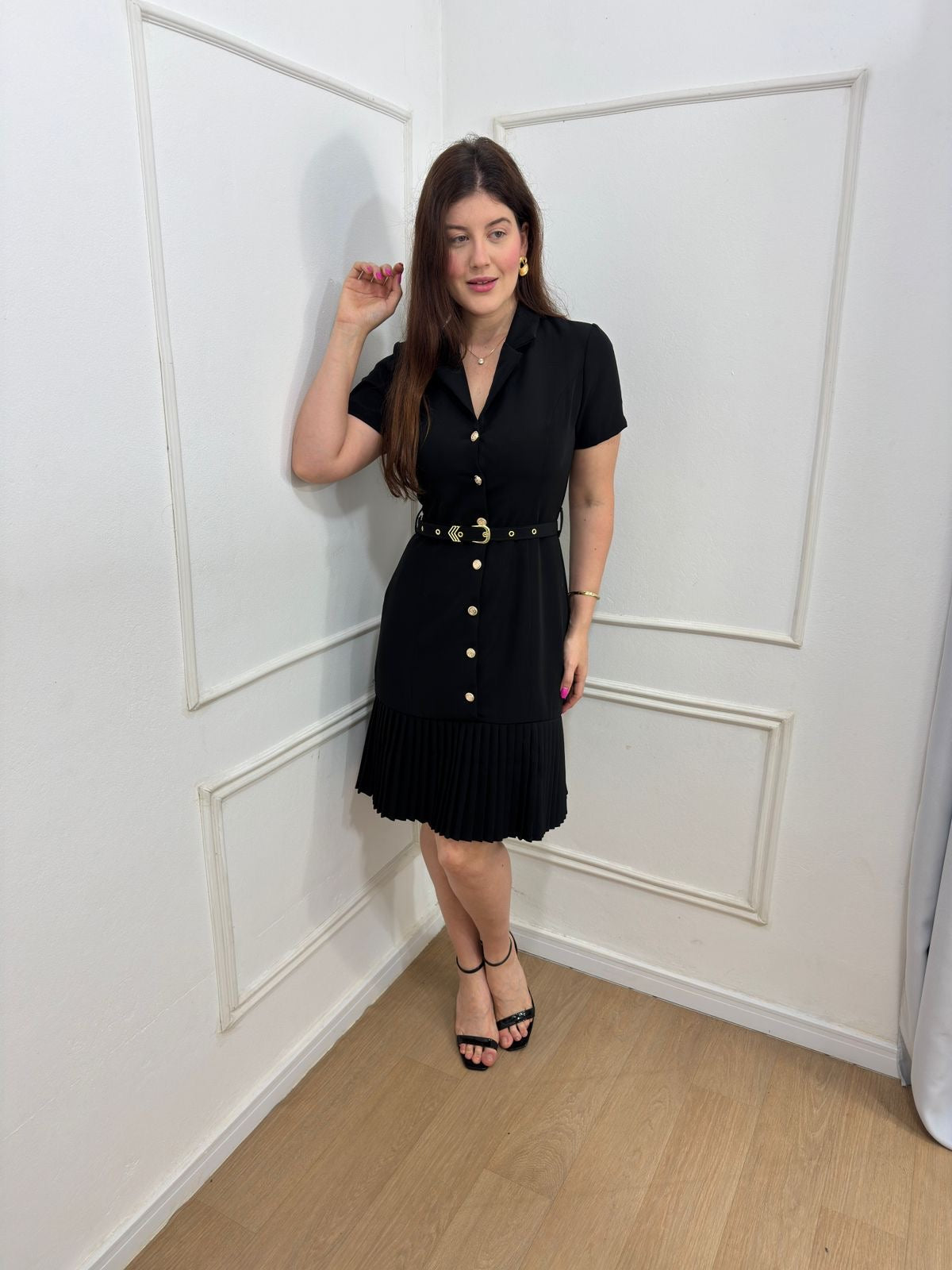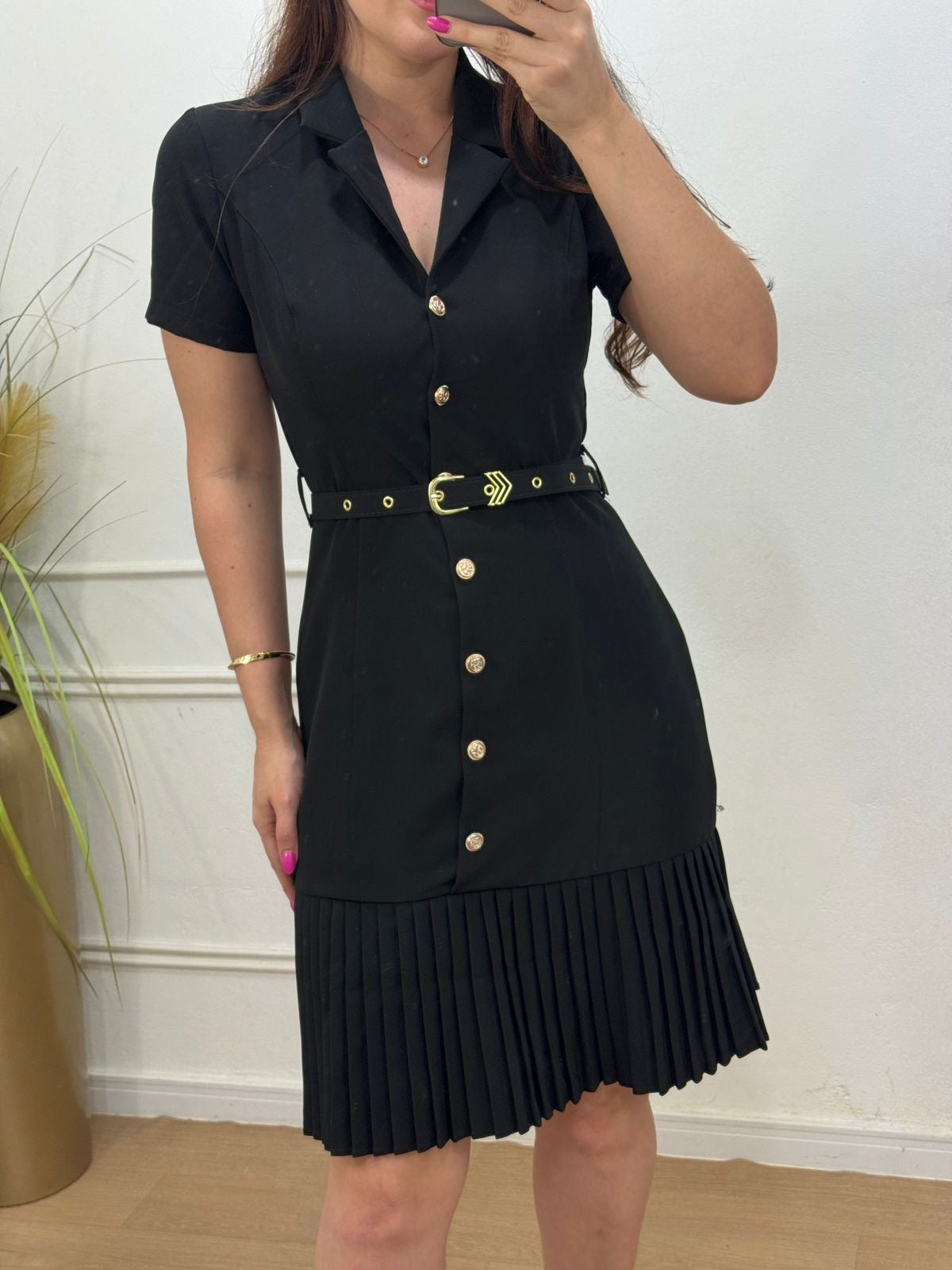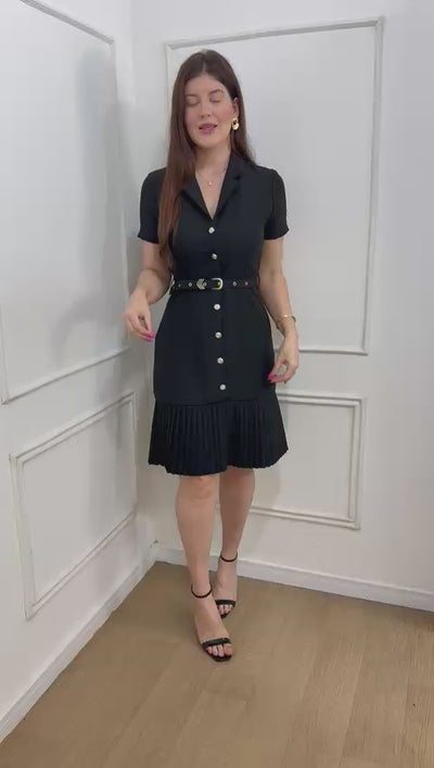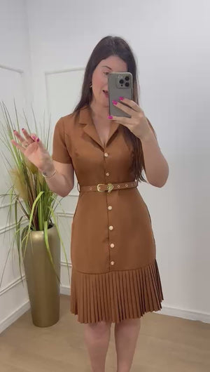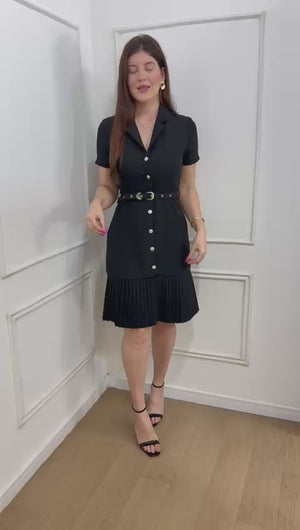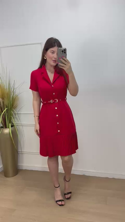 Vestido em alfaitaria todo em botões funcionais acompanha cinto , possui gola , barra plissada.