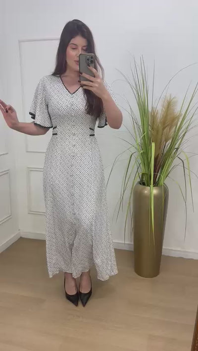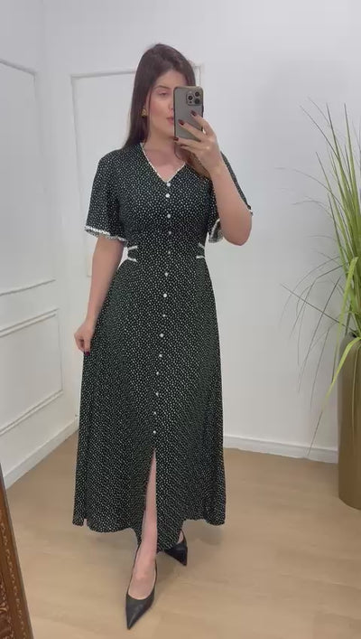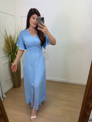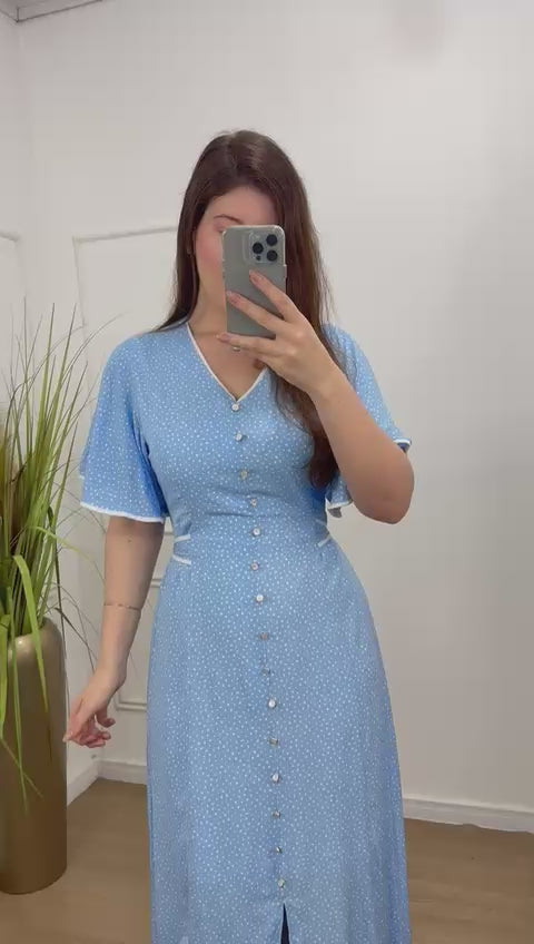 Modelo inspirado no verão europeu, tendência pra nossa estação o vestido Nina é produzido no tecido viscolinho premium forrado botões em madre pérola, possui faixa , lastex nas costas.