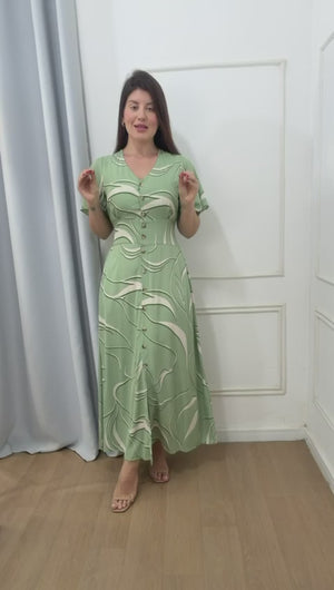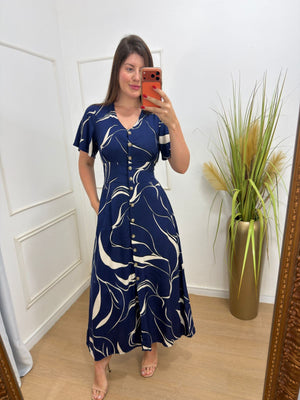 Chemise no visco linho forrado, botões funcionais, lastex nas costas.
