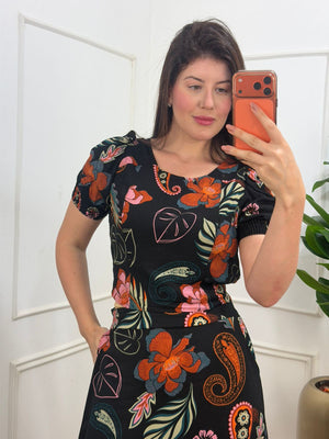 Conjunto no viscolinho premium, elástico nas costas, bolsos.