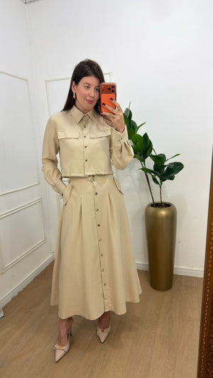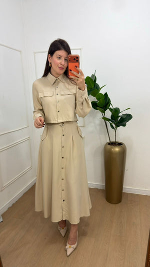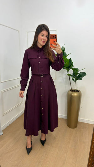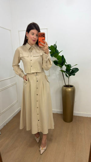 Conjunto na Alfaitaria composto de jaquetinha+saia super mídi botões funcionais da saia e da jaqueta, possui bolsos funcionais , manga longa , punho, e acompanha cinto na saia.