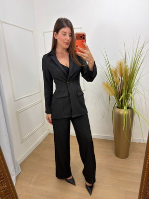 Conjunto na alfaitaria calça+blazer, ele não é forrado, calça possui bolso faca na lateral zíper na lateral.
