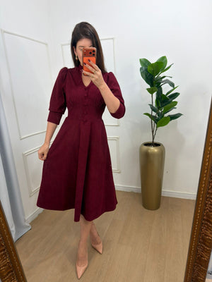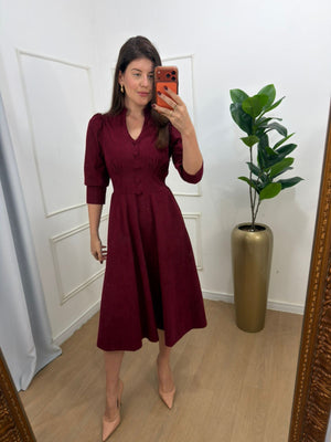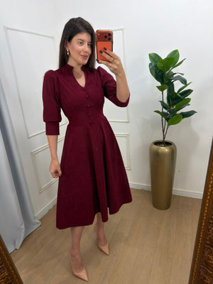 Vestido no veludo cotelê com pouco elastano botões forrado, elástico nas costas, modelagem evase.