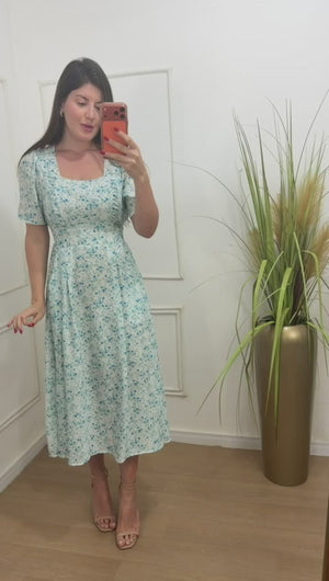 Vestido crepe seda forrado possui bolso, elástico na cintura parte das costas, bolsos frontais, detalhe no busto.