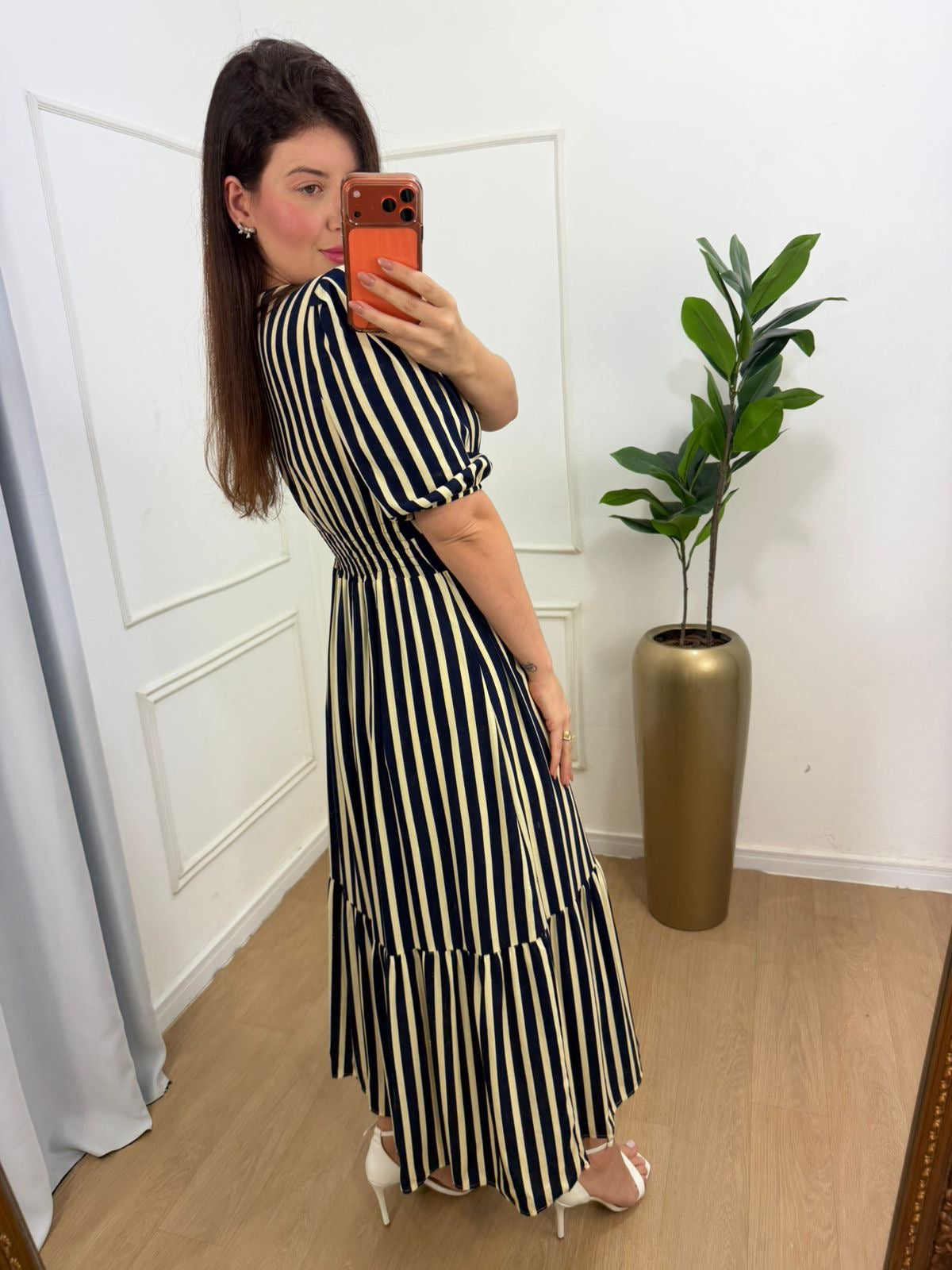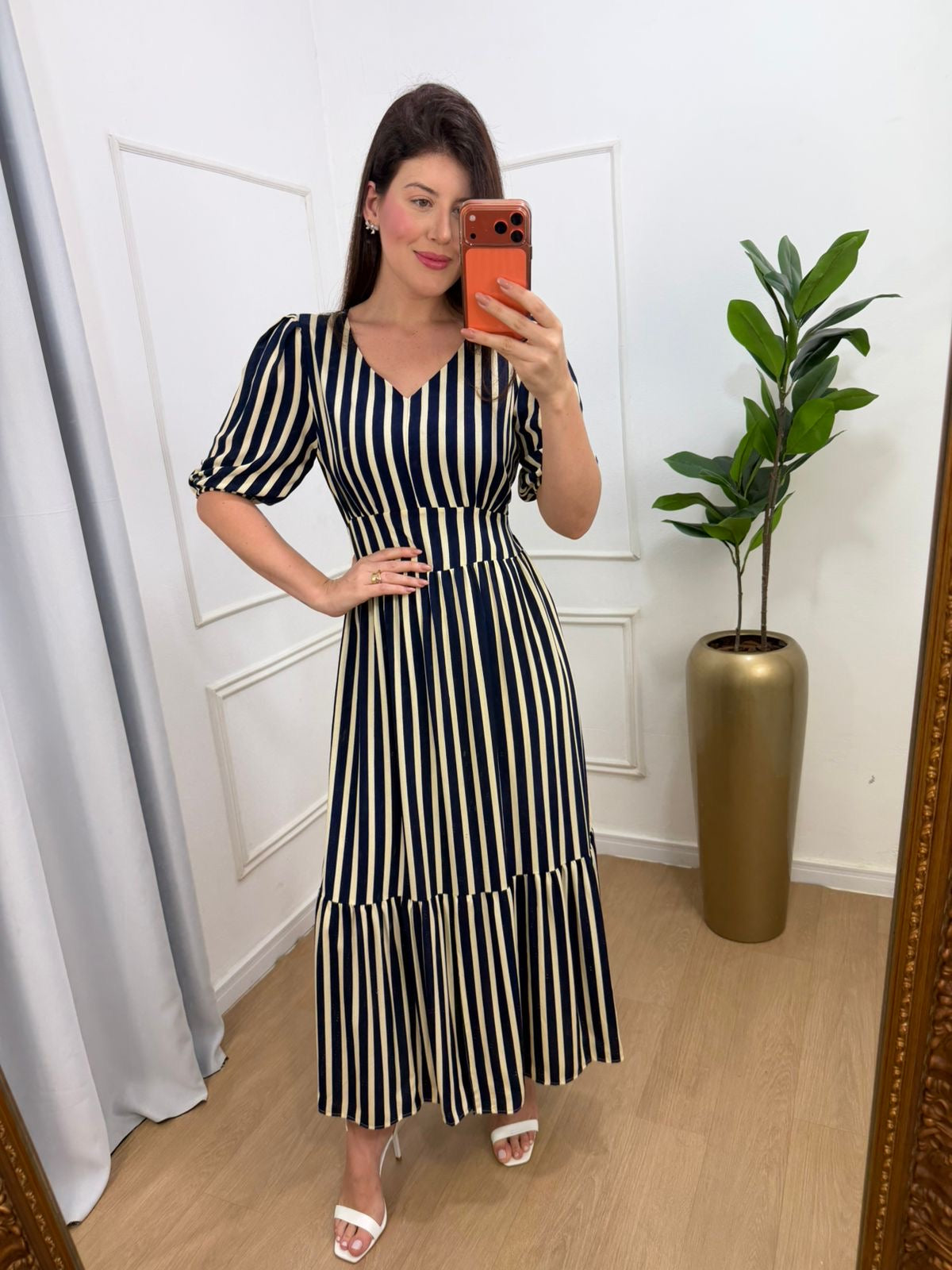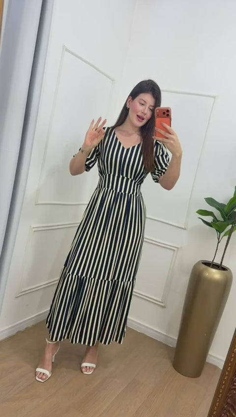 Vestido no viscolinho premium forrado fenda frontal abaixo do joelho, lastex na cintura na parte das costas.
