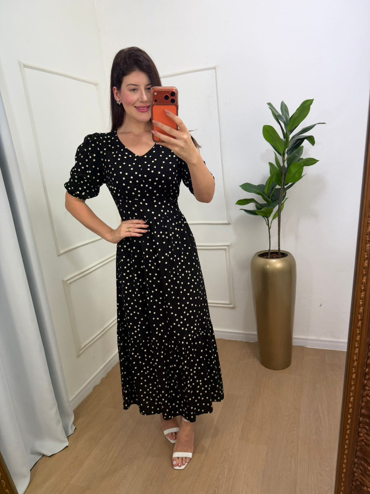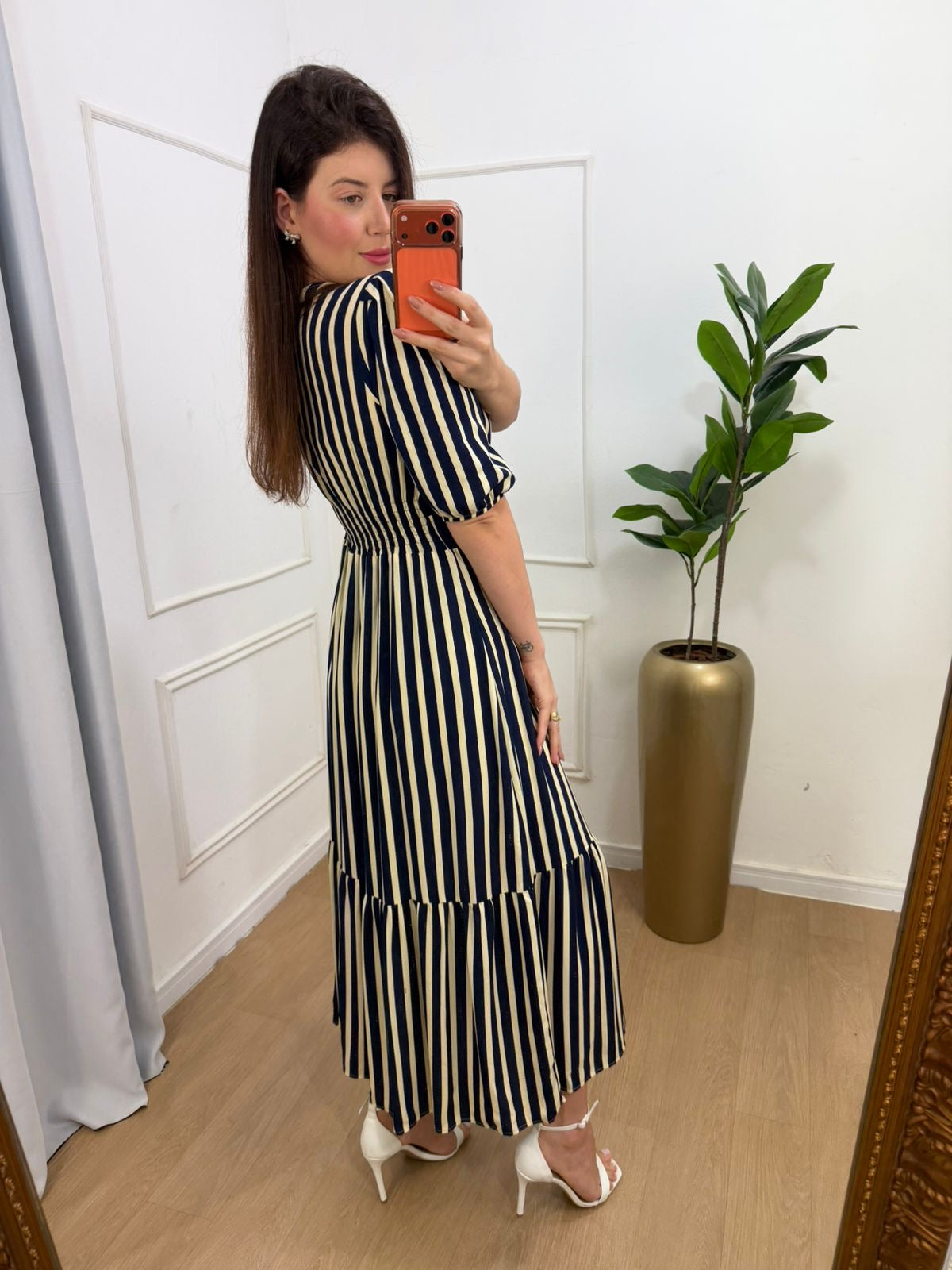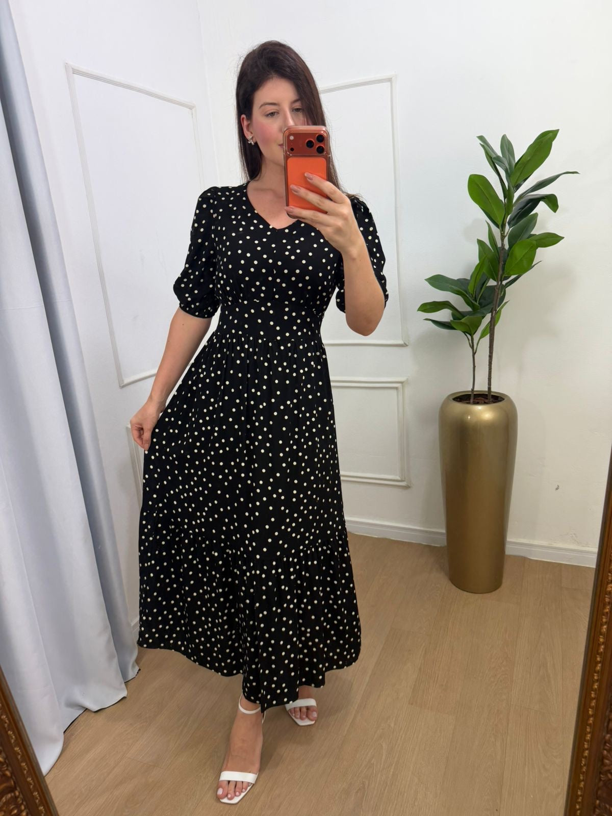 Vestido no viscolinho premium forrado fenda frontal abaixo do joelho, lastex na cintura na parte das costas.