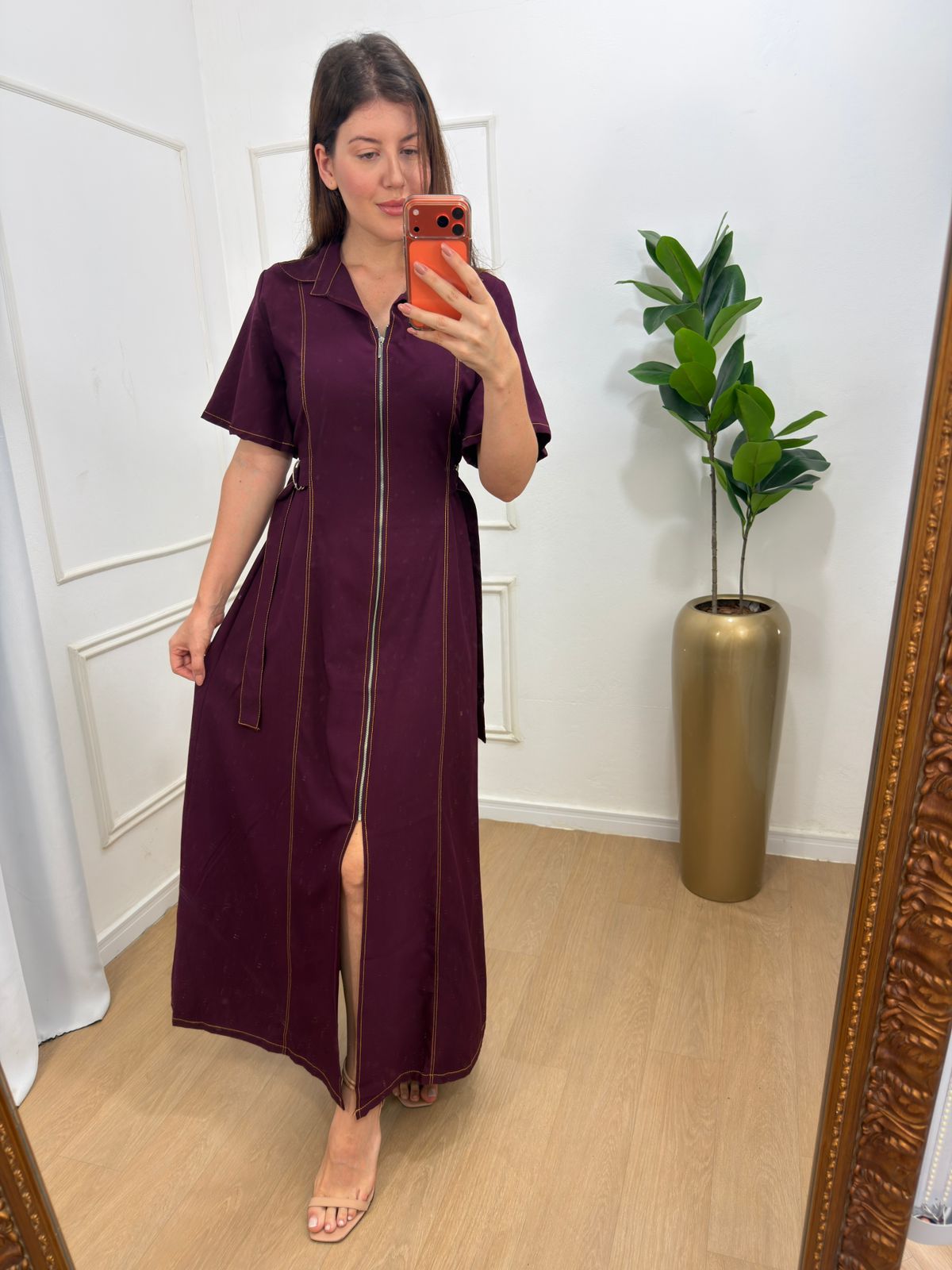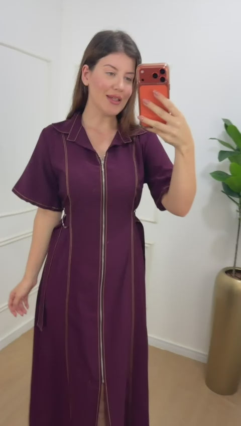 Zíper funcional, detalhe de amarração nas laterais , não possui forro pois o tecido não é transparente.