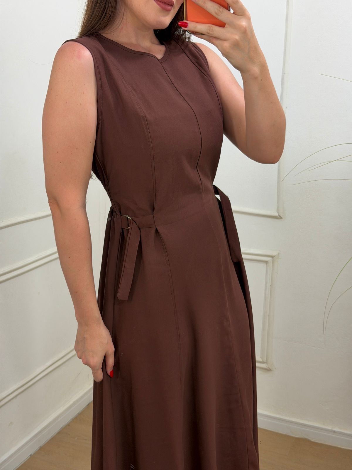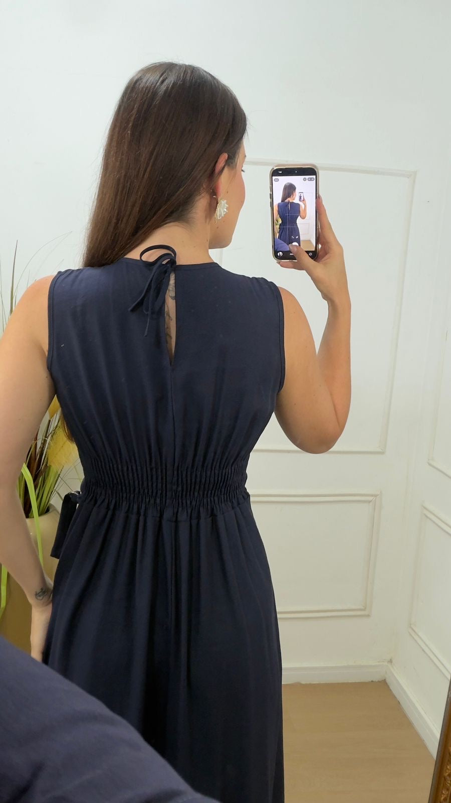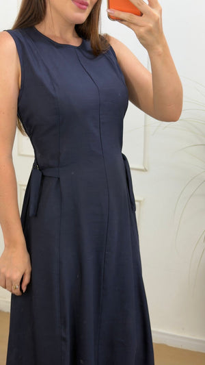 Vestido no sensorial alfaitaria não possui forro pois tecido é informado, detalhe de amarração na cintura, amarração no pescoço, lastex nas costas, modelagem evasê.