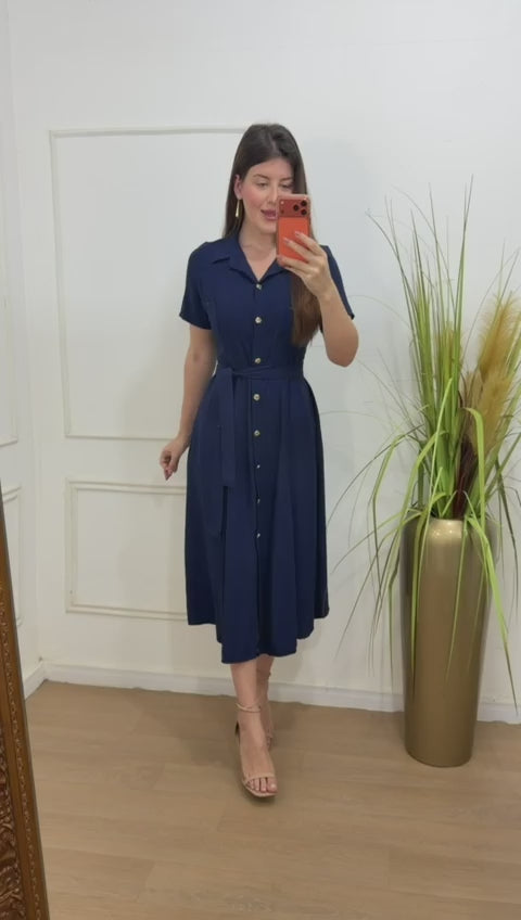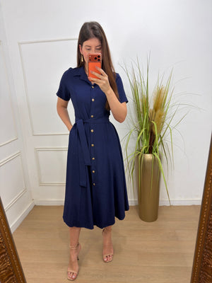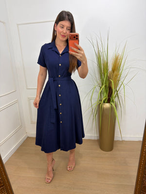 Vestido no sensorial 70% viscose / 30% poliéster botões funcionais modelagem evasê, acompanha faixa e possui elástico nas costas.