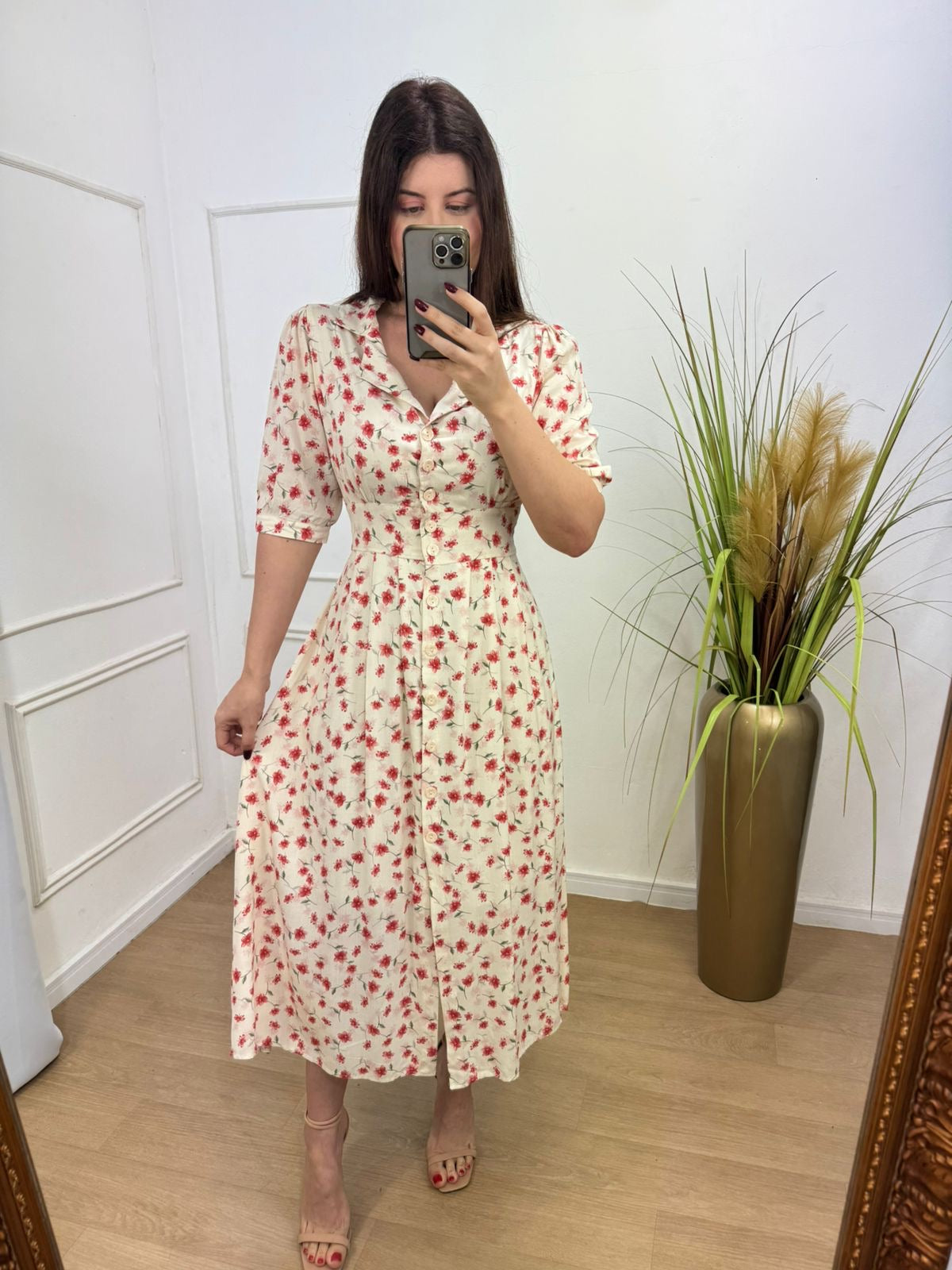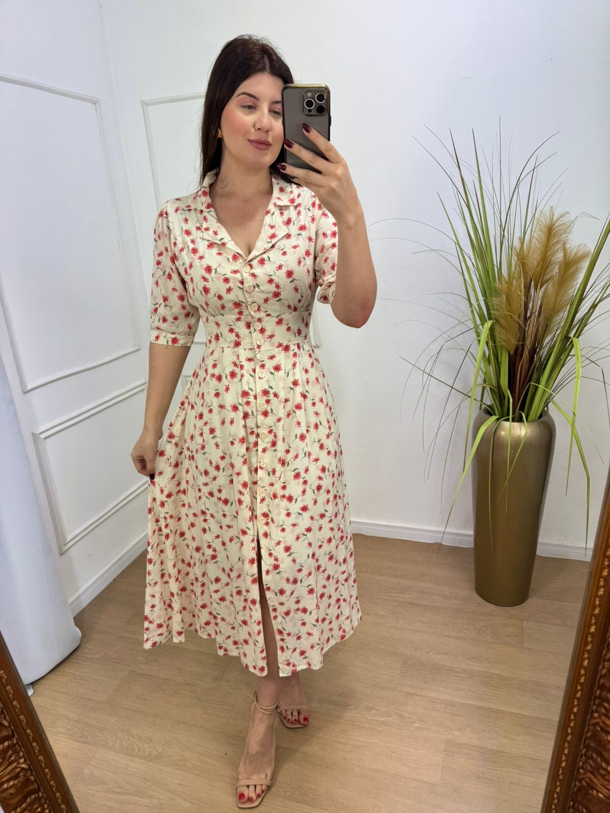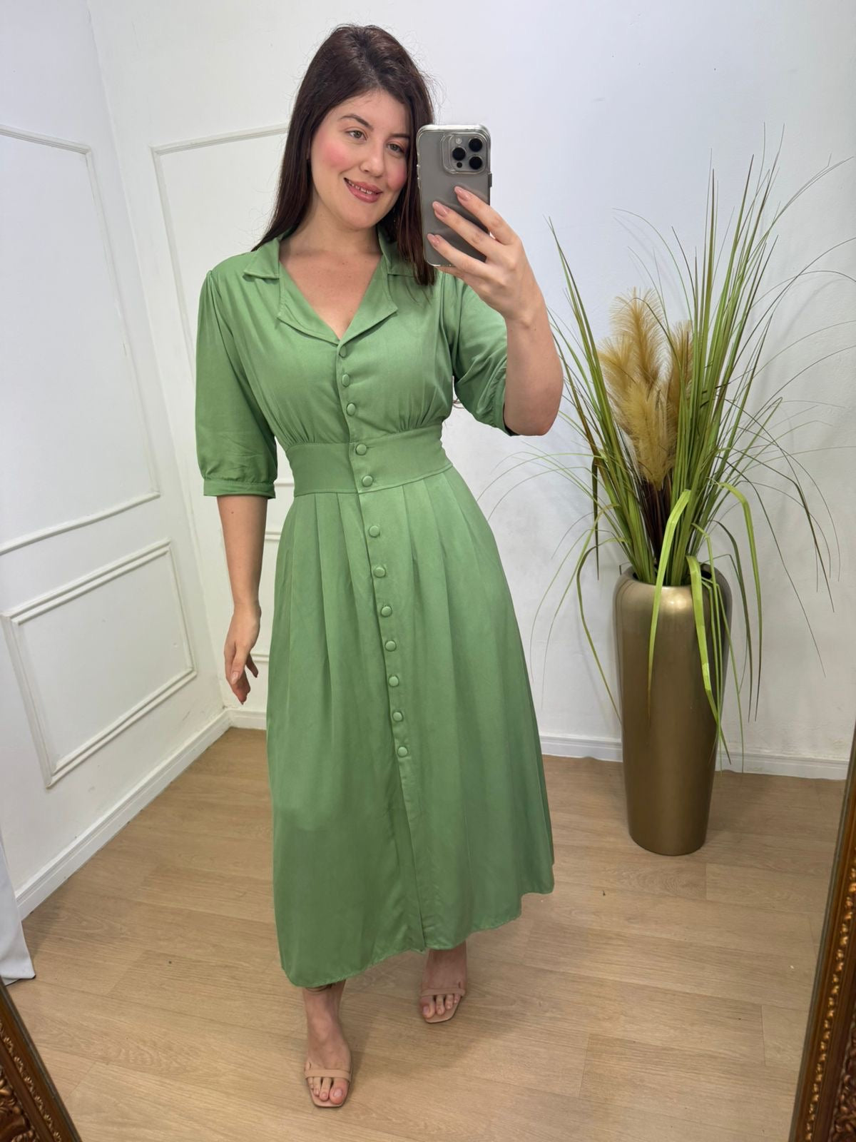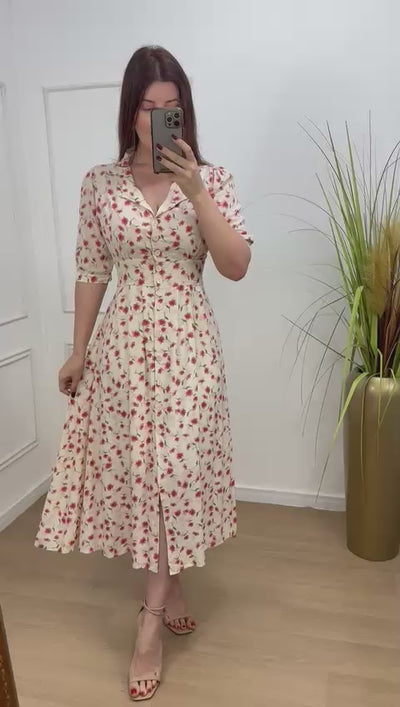 Vestido no viscolinho premium forrado todo em botões