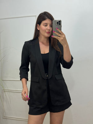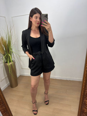 Conjunto na alfaitaria de blazer + bermuda possui bolsos na bermuda, botão forrado e passa cinto, blazer bolso falso, manga longa e pode ser usado manga 7/8 tambem.