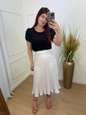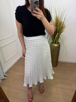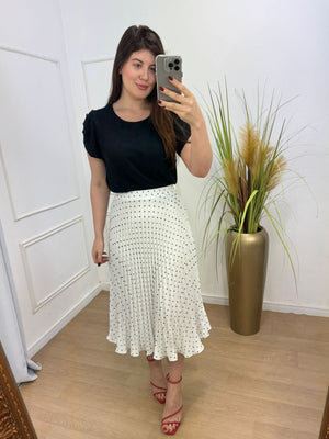 Saia na alfaitaria crepe elástico na cintura, não possui forro.