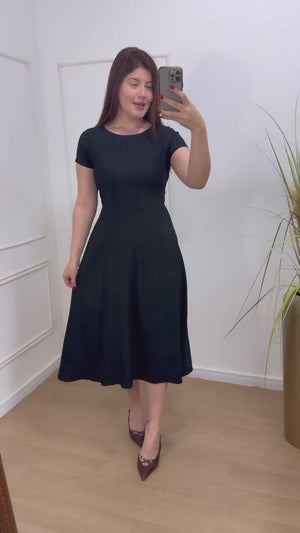Descrição: vestido no sensorial crepe lastex nas costas , faixa pra amarração pode ser usado pra trás ou frontal , modelagem evasê.