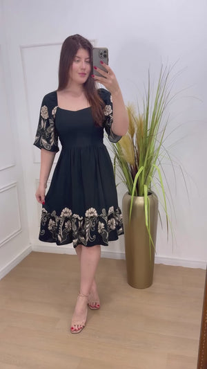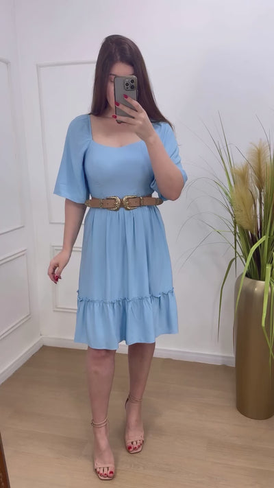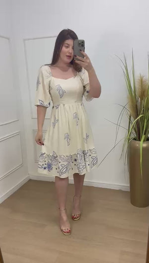 Vestido no viscolinho forrado elástico no ombro e nas costas