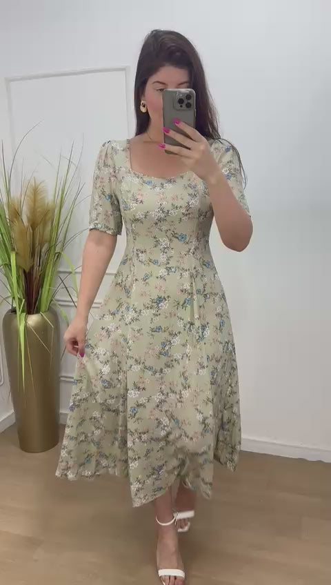 Vestido no viscolinho premium elástico nas costas modelagem evasê.