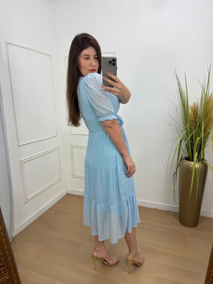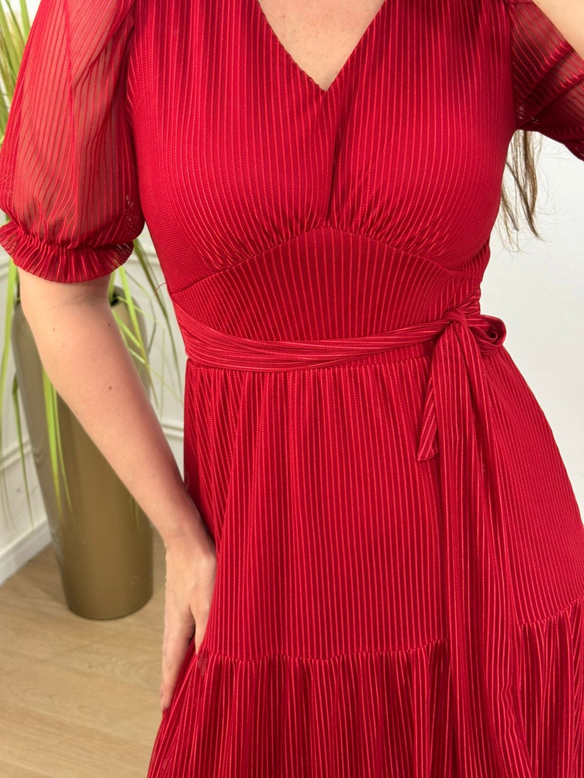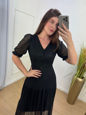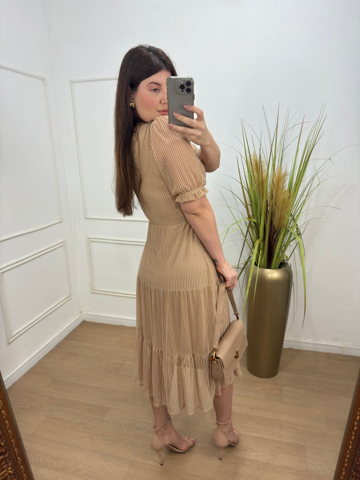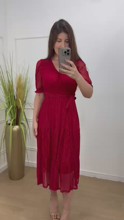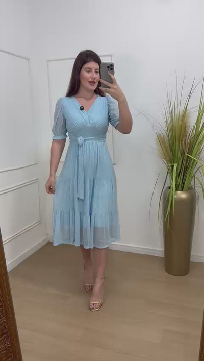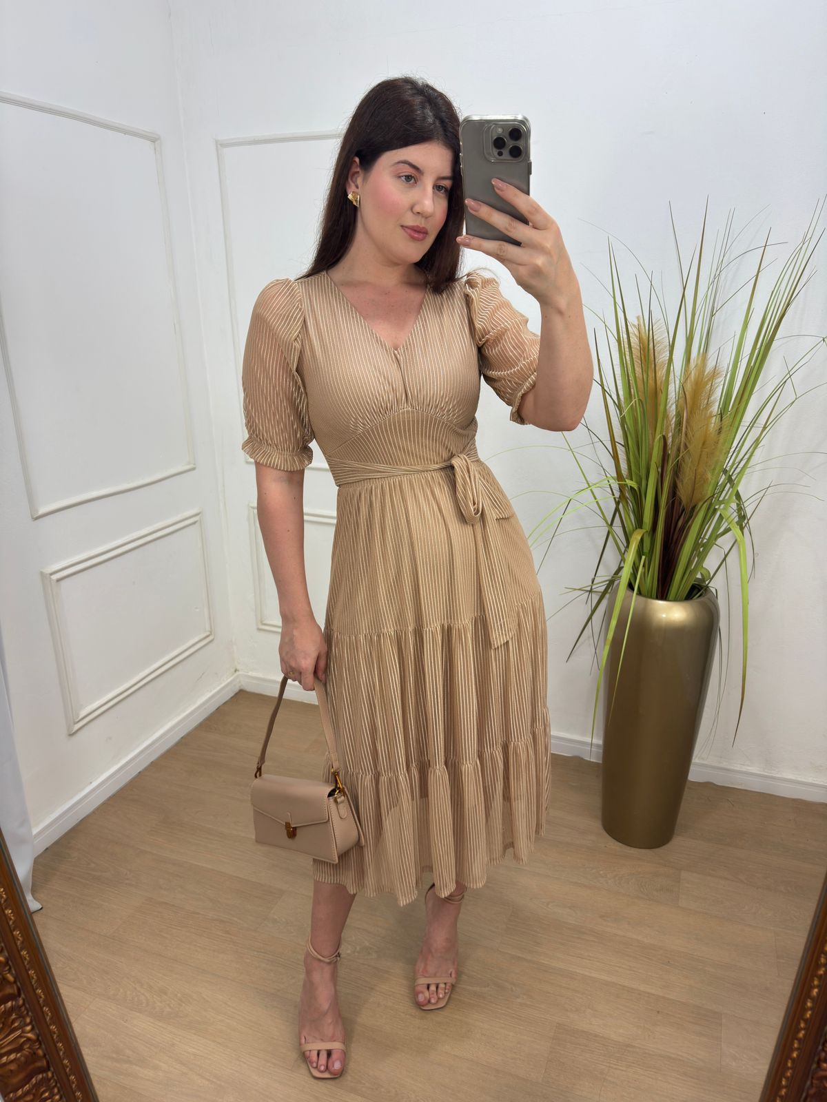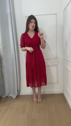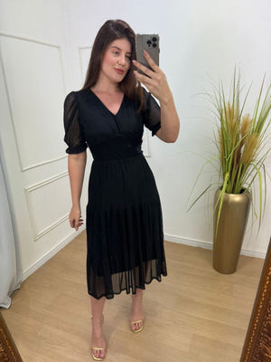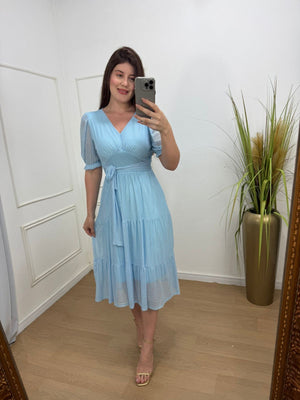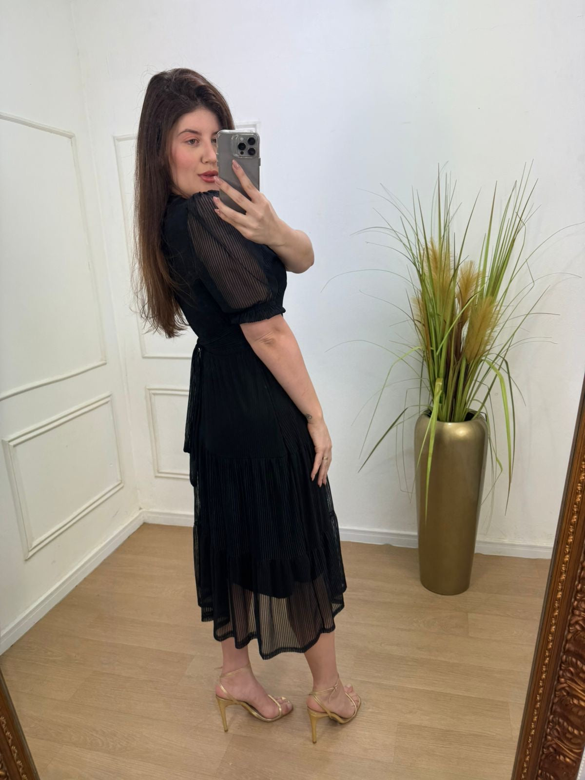 Vestido em tule com elastano todo forrado decote V possui amarração lastex nas costas.