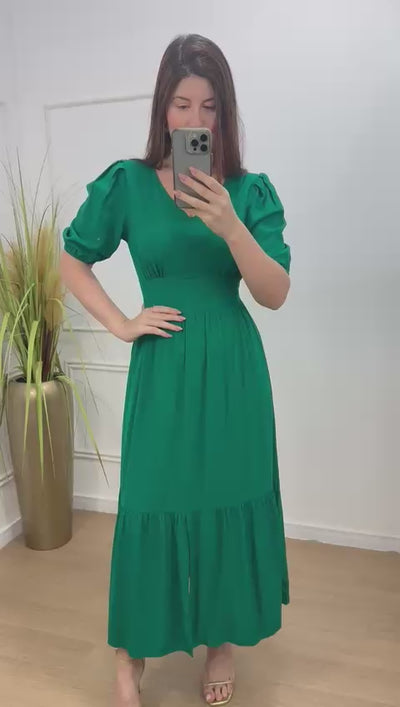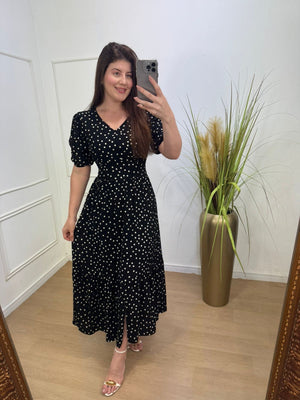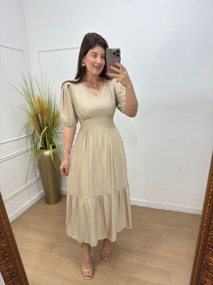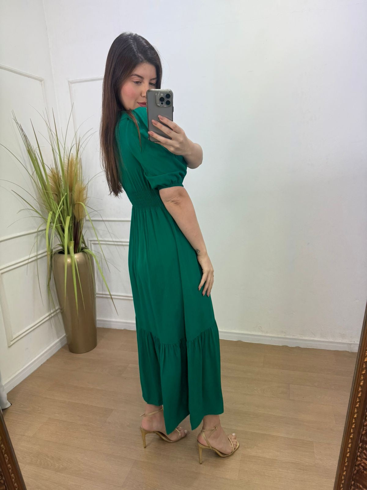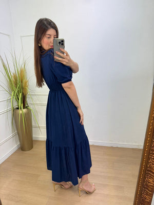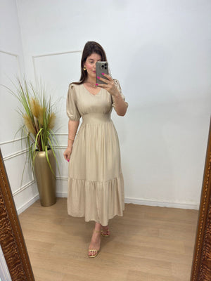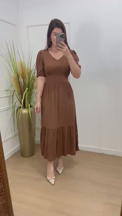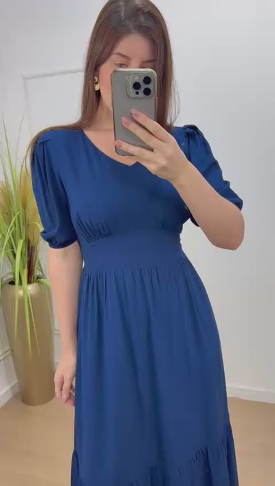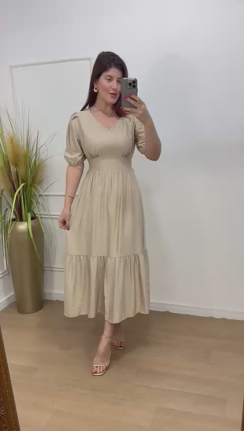 Vestido no viscolinho premium forrado fenda frontal abaixo do joelho, lastex na cintura na parte das costas.