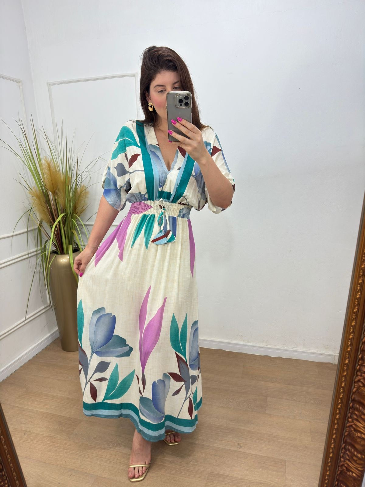 Vestido no viscolinho premium elástico na cintura amarração.