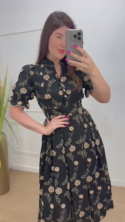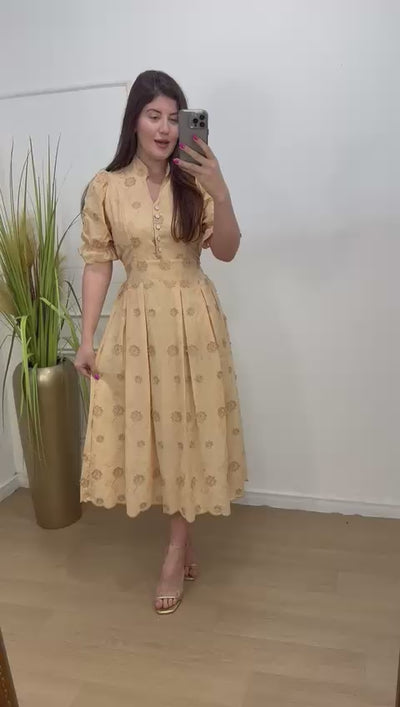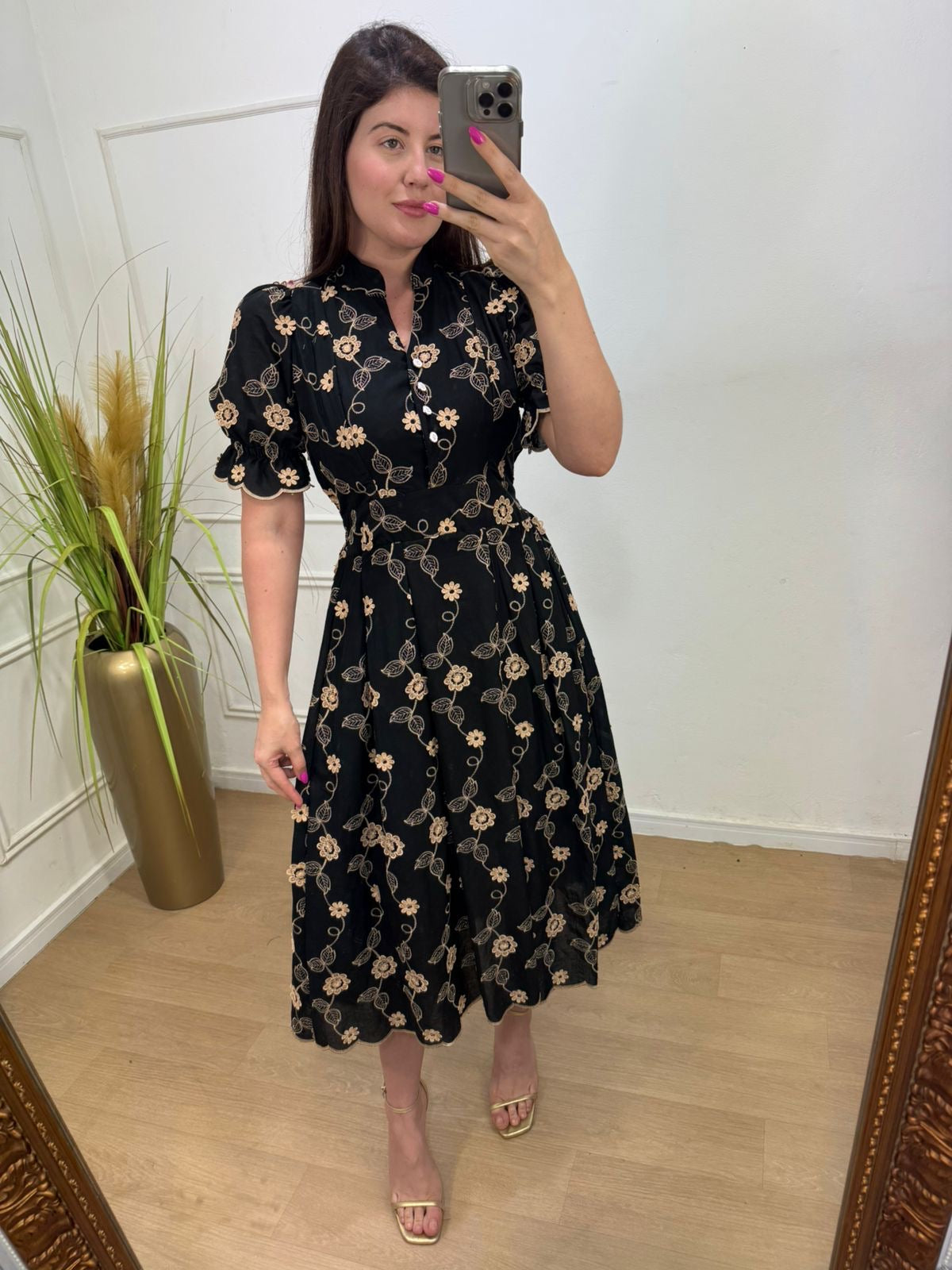 Vestido 100% algodão laize com botões funcionais frontais possui forro.