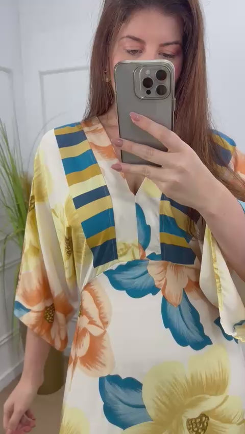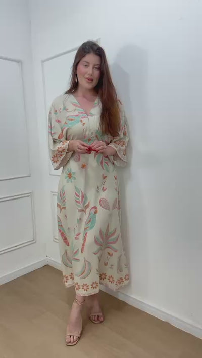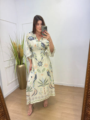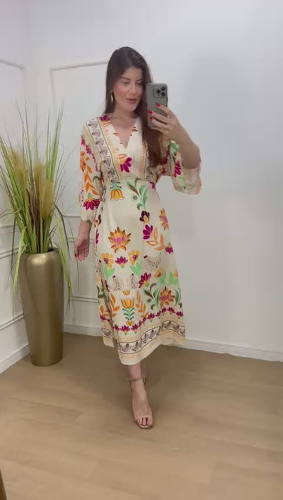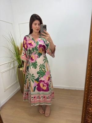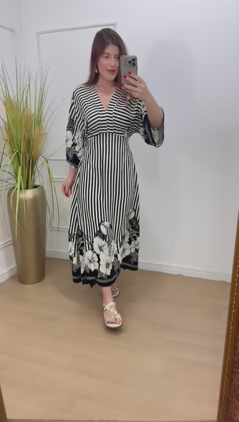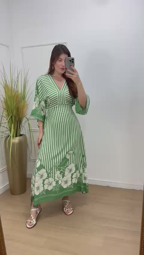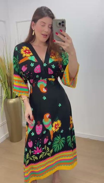 Vestido no viscolinho elástico na parte das costas, manga ampla , não possui forro.