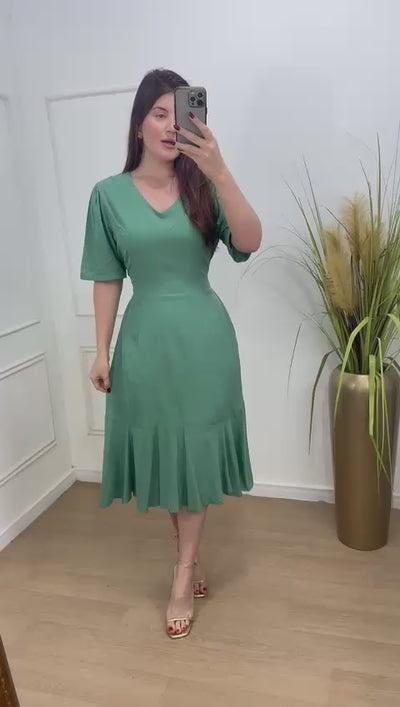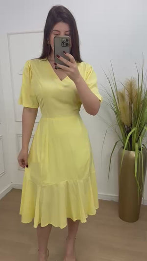 Vestido no viscolinho premium forrado com bolsos lastex nas costas.