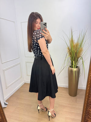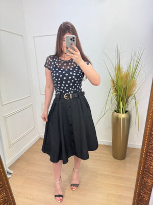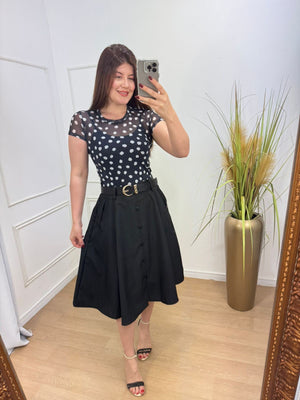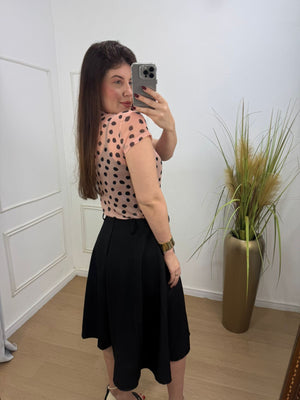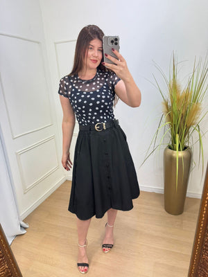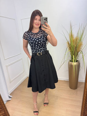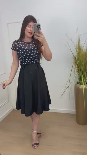 Saia na alfaitaria crepe com bolsos , zíper nas costas, passa cinto