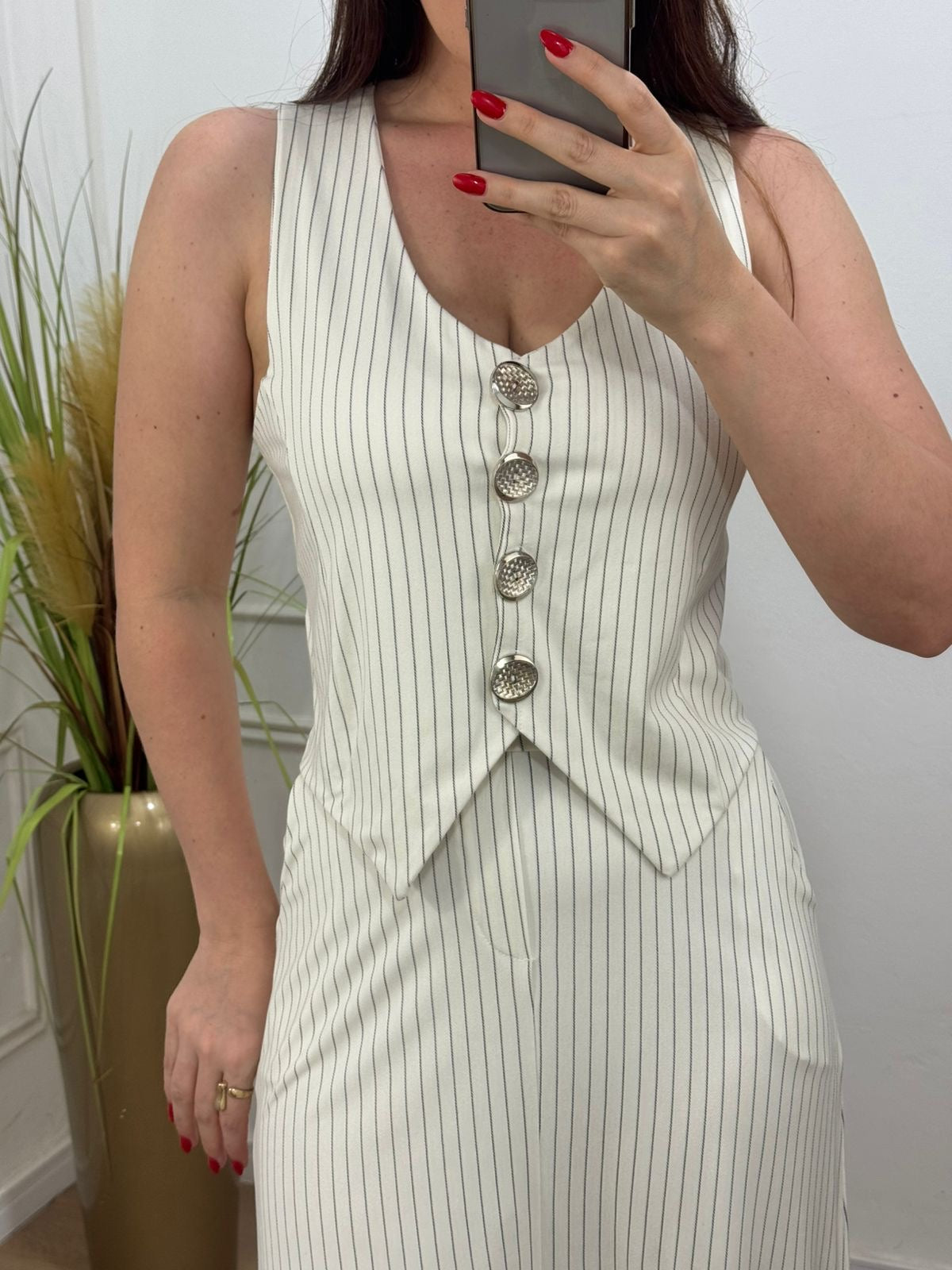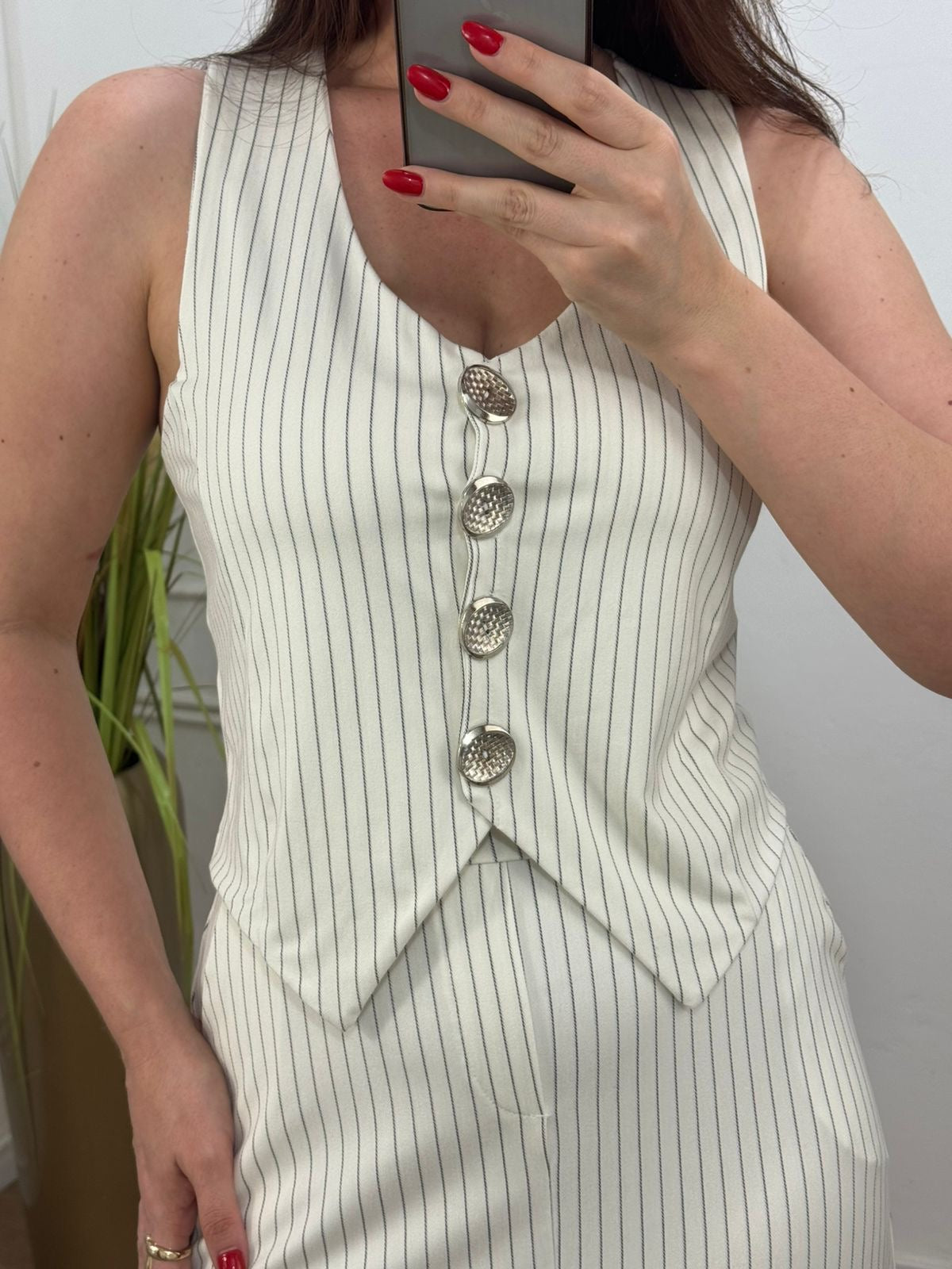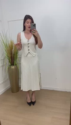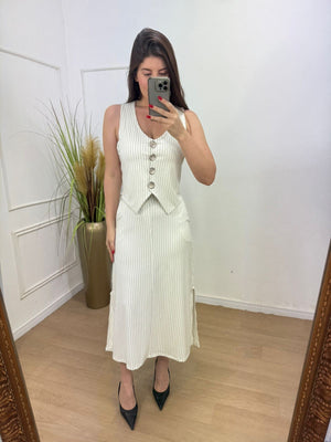 Conjunto malha ponto Roma possui bastante elastano botões são funcionais, bolso e elástico no cós da saia.