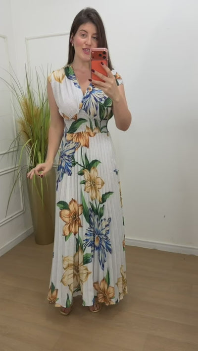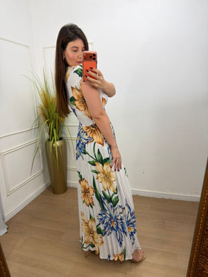 Vestido no crepe alfaitaria plissado decote transpassado.