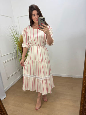 Descrição: vestido no viscolinho forrado detalhe em guippir na Barra disponível do 38 ao 44 não acompanha cinto..