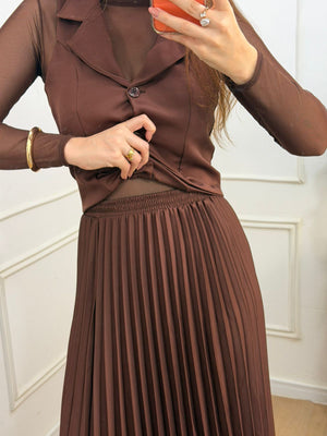 Conjunto no crepe alfaiataria composto de saia longa+ colete