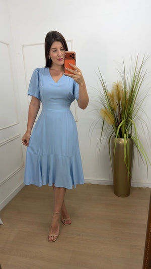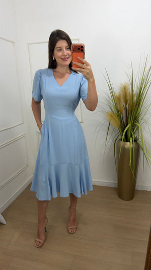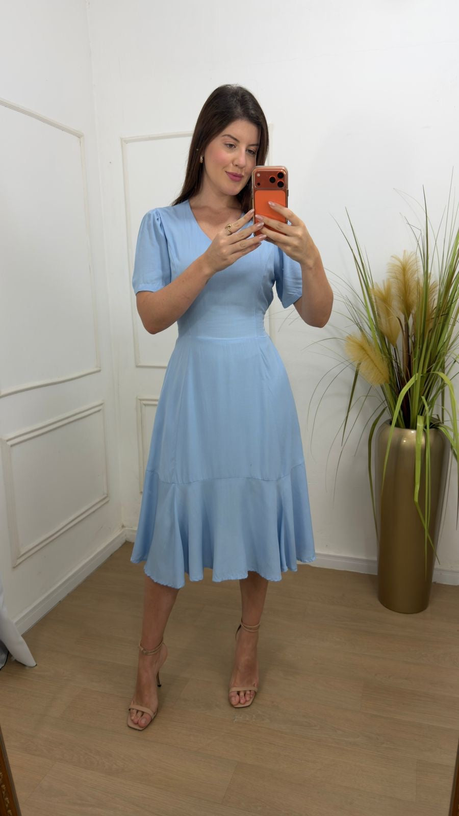 Vestido no viscolinho premium forrado com bolsos lastex nas costas.
