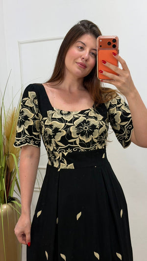Vestido no viscolinho bordado lastex nas costas , forrado na parte da saia.