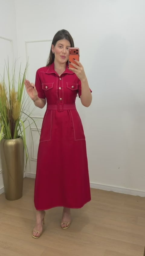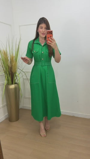 Vestido na alfaitaria sensorial 70% viscose 30% poliéster botões funcionais acompanha cinto faixa, bolsos.