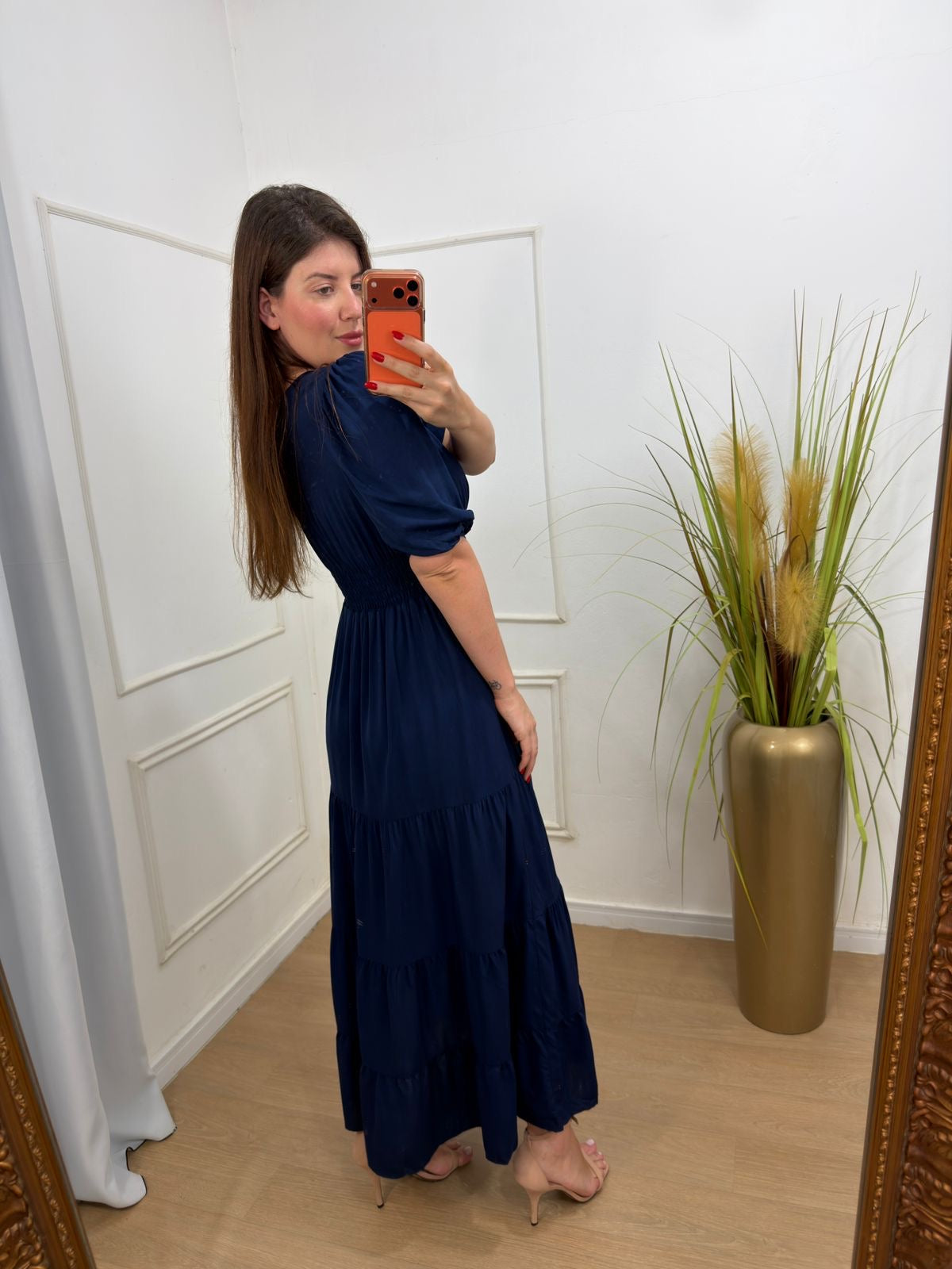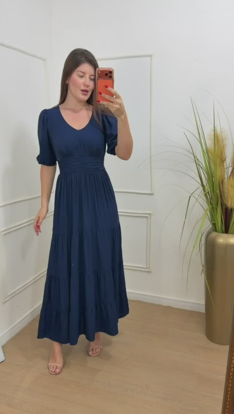M (40) — Busto 92 a 96 cm | Cintura 74 a 78 cm | Quadril 100 a 104 cm | Comprimento 125 cm (veste 40)