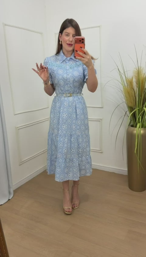 Vestido no 100% algodão forrado na parte da saia  e parte frontal com botões acompanha cinto.