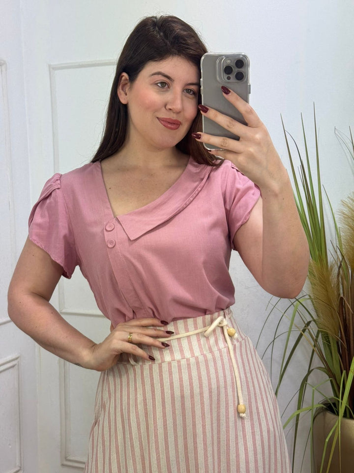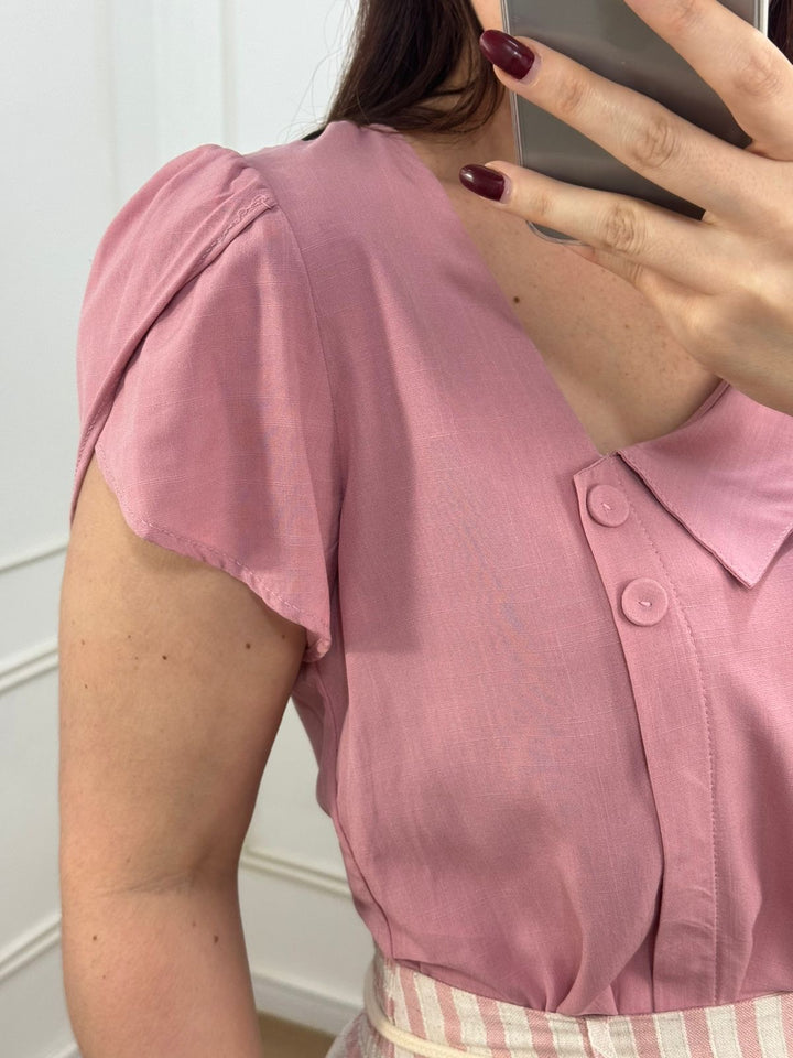 Blusa no viscolinho com detalhes em botão ( não é funcional)