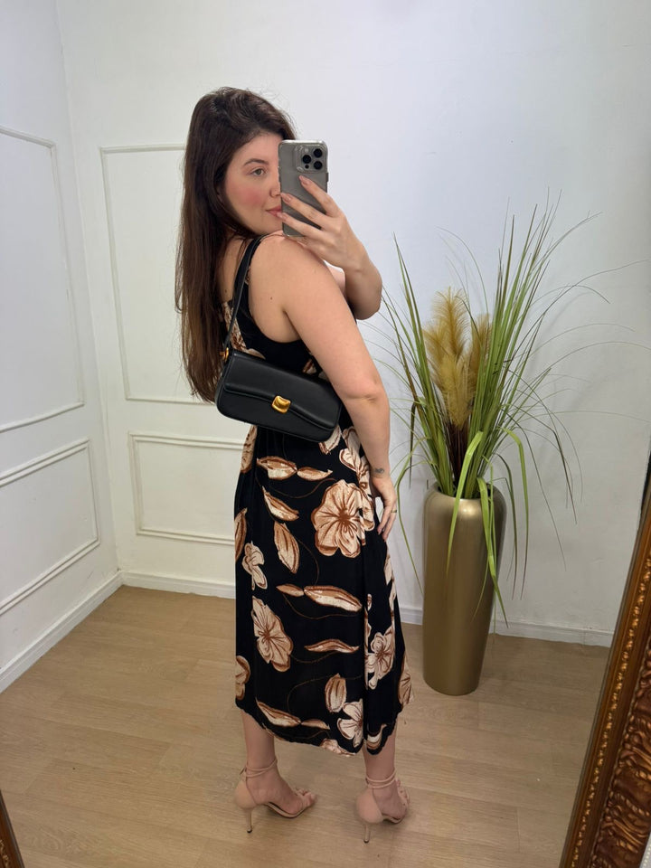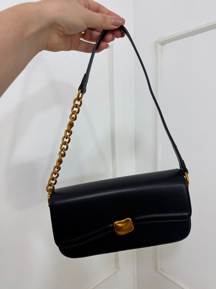 Seu design minimalista na cor preta combina com tudo, enquanto o fecho dourado traz um charme especial e sofisticado.