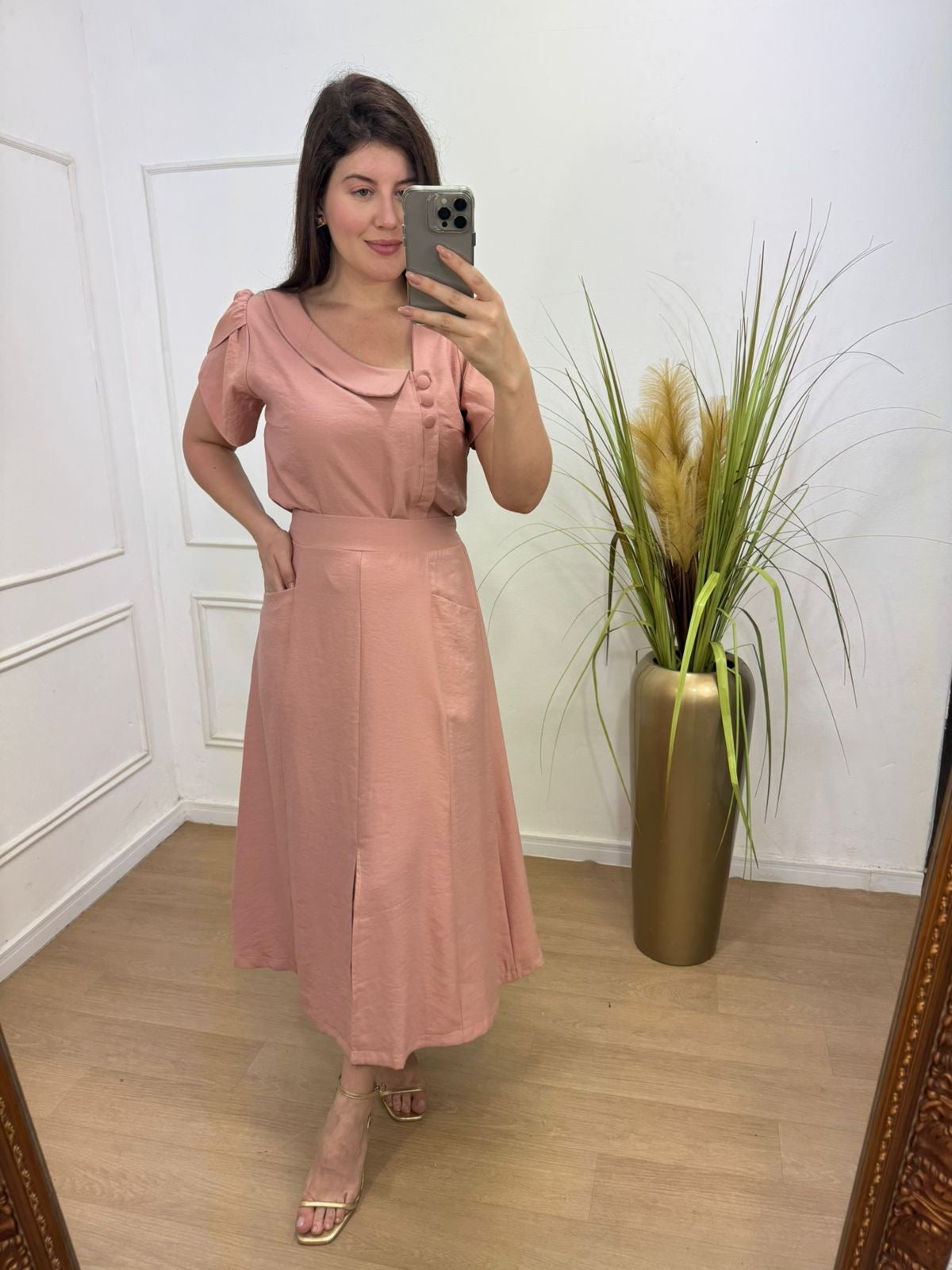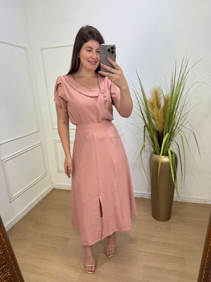 Conjunto no viscosarja detalhe na blusa de botões ( não funcional)