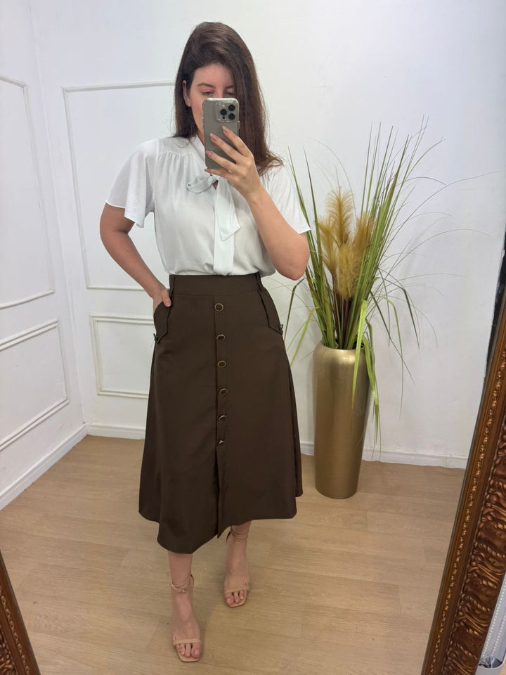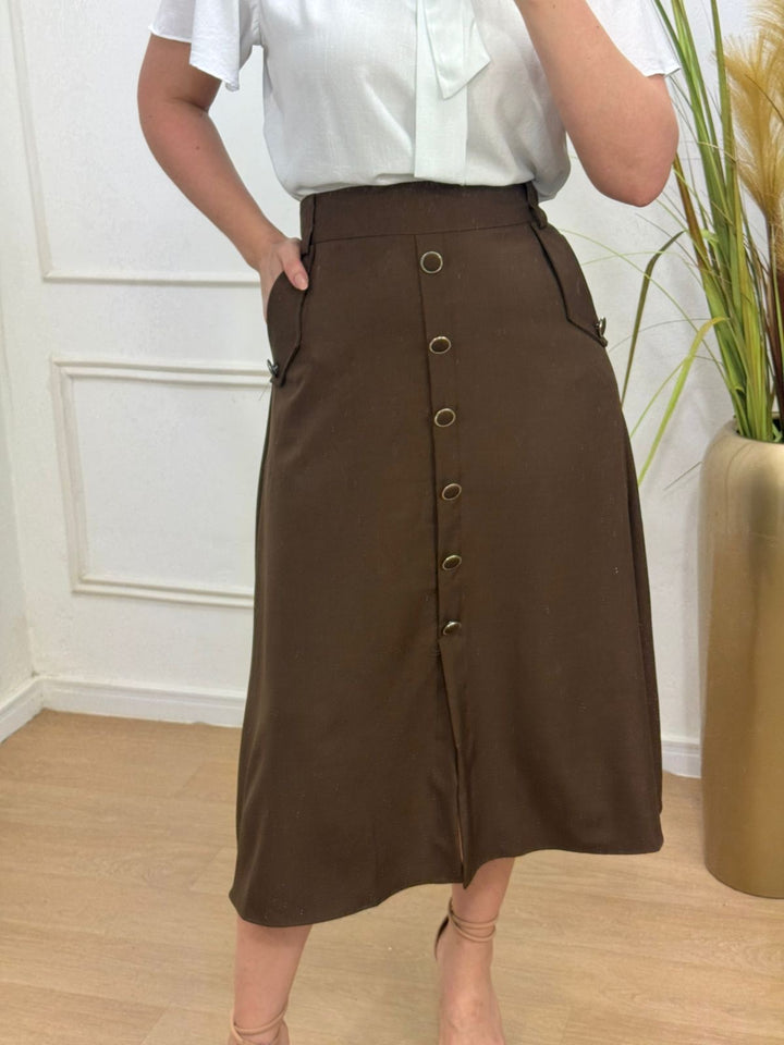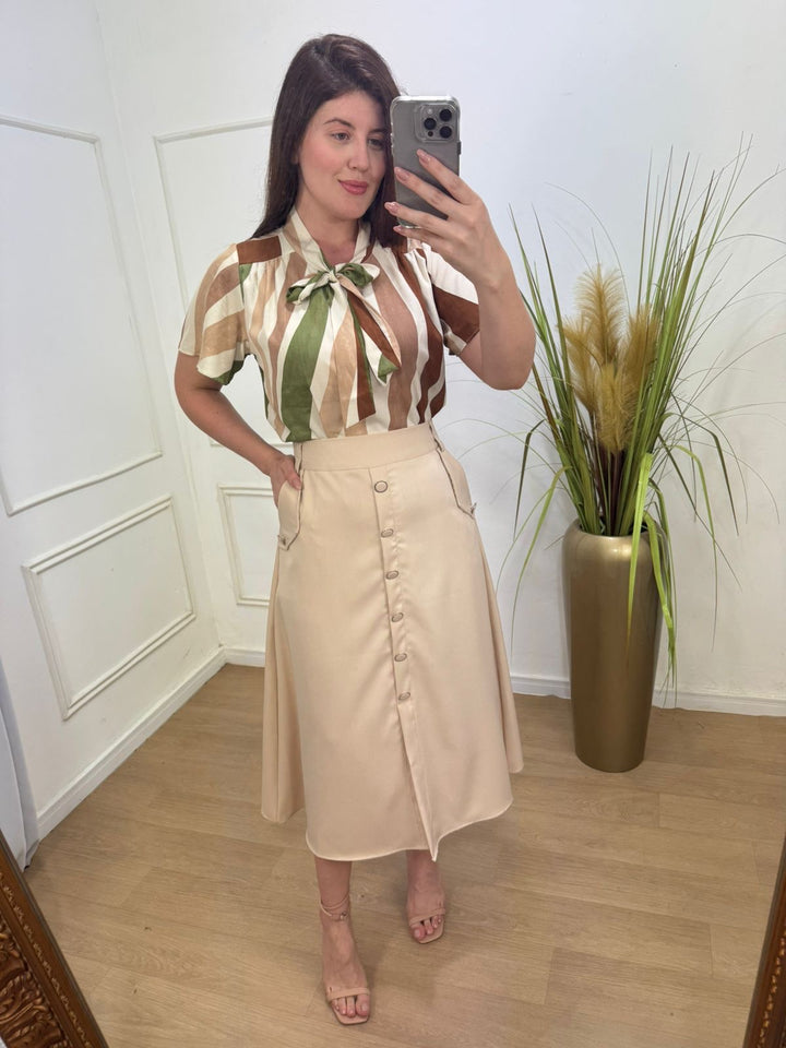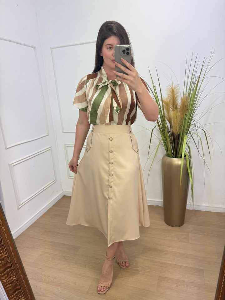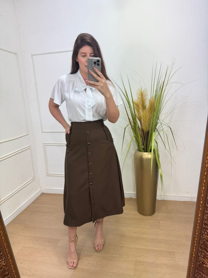 Saia evasê no tecido alfaitaria crepe possui botões forrado zíper , bolsos modelagem perfeita.