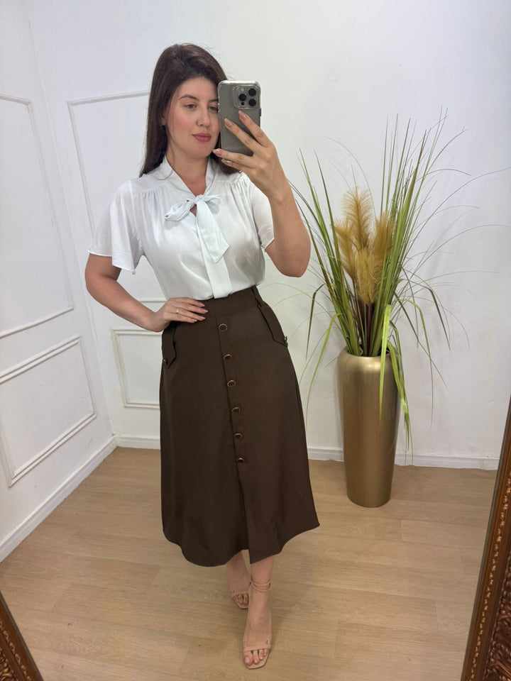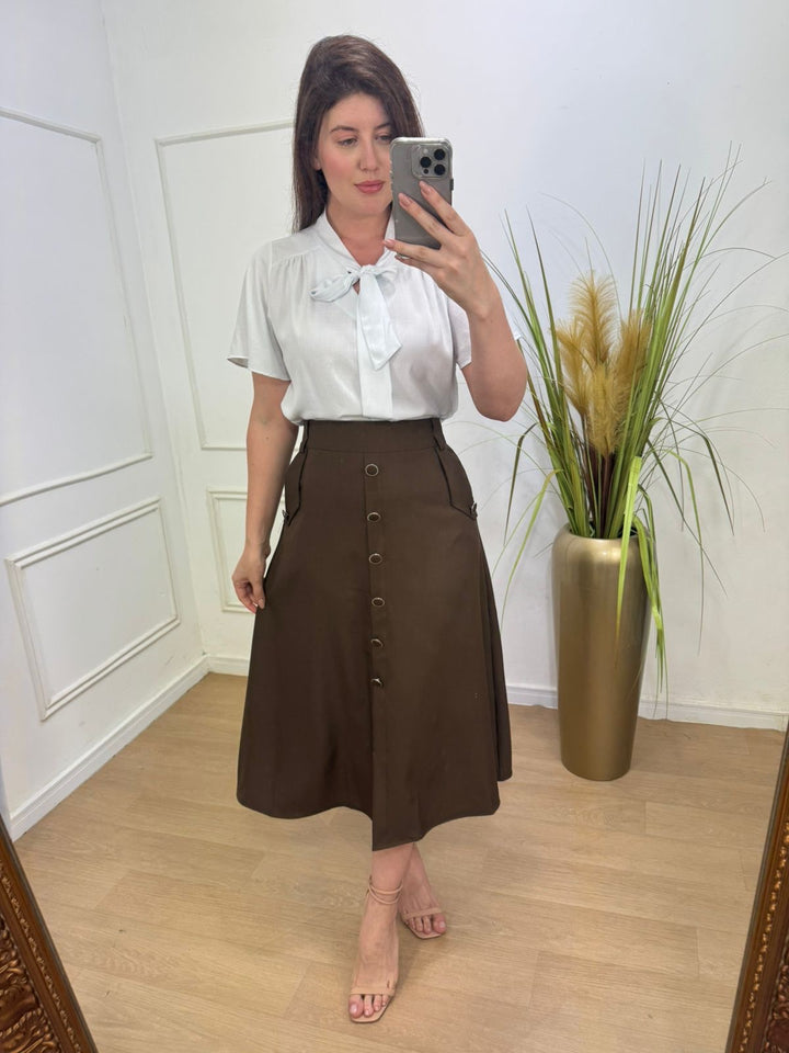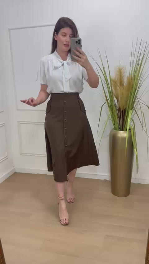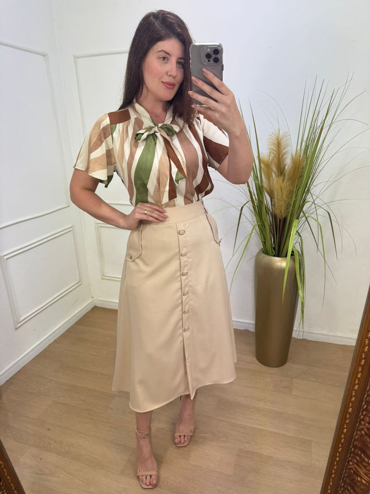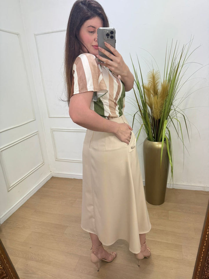 Saia evasê no tecido alfaitaria crepe possui botões forrado zíper , bolsos modelagem perfeita.