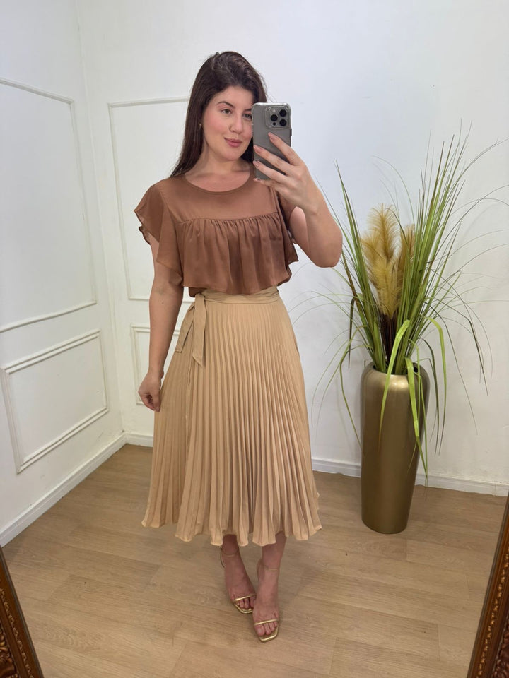 Descrição: saia no crepe alfaitaria transpassada possui amarração.