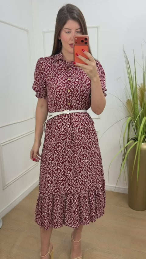 Vestido no viscolinho possui forro na parte da saia , botões funcionais acompanha cinto, modelagem ampla.