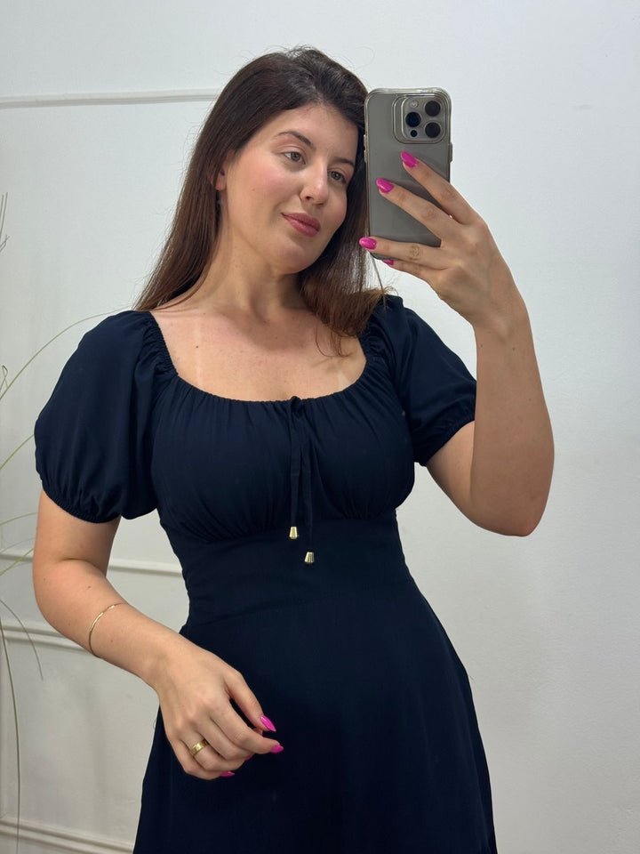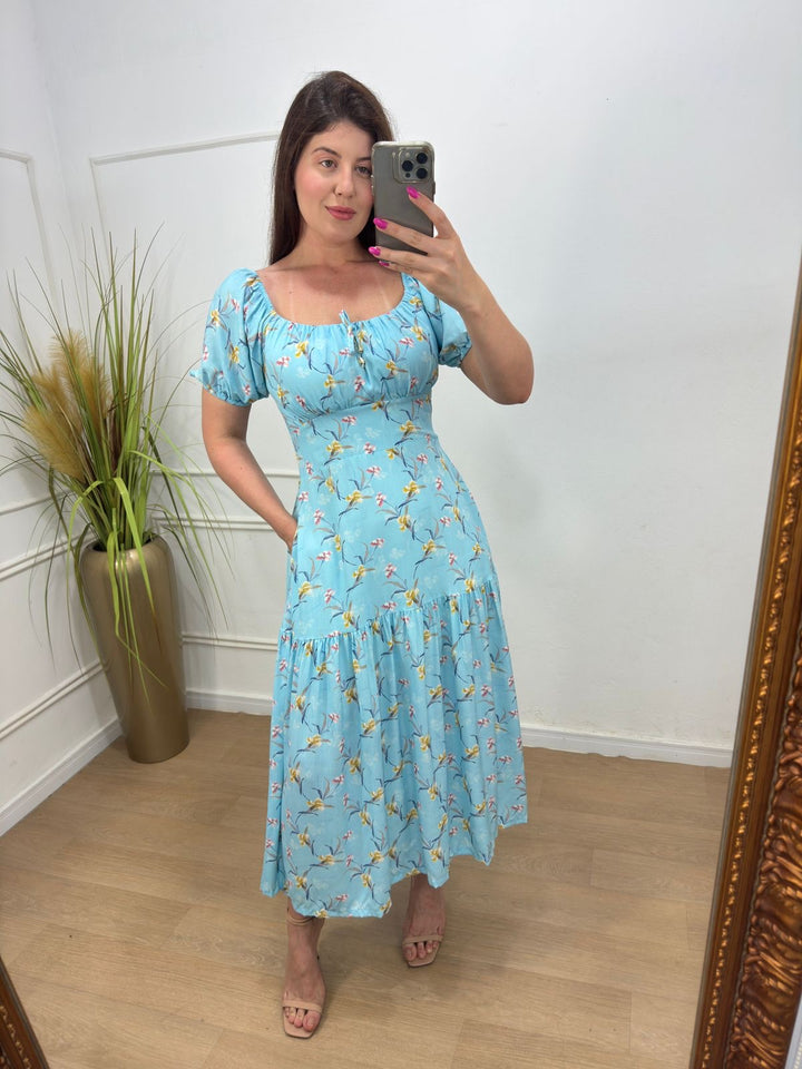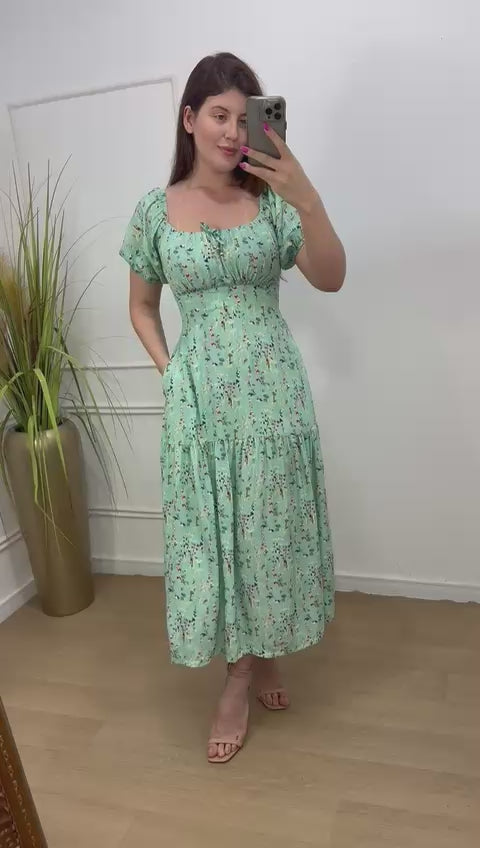 Vestido no viscolinho forrado lastex nas costas, bolso, forro na parte da saia