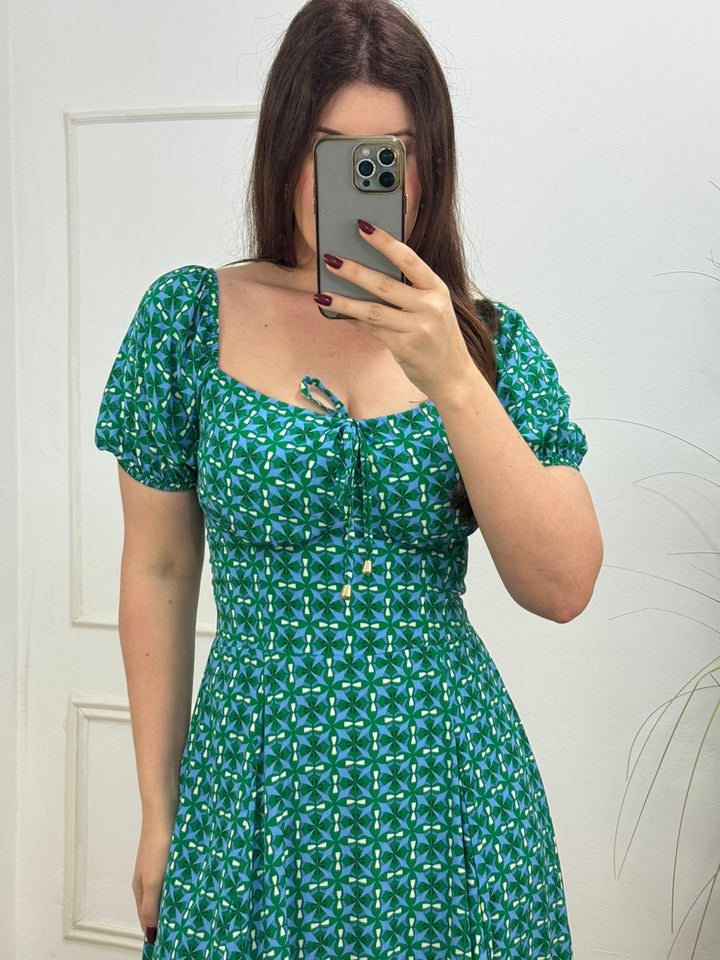 Vestido no viscolinho premium forrado com amarração e elástico nas costas.